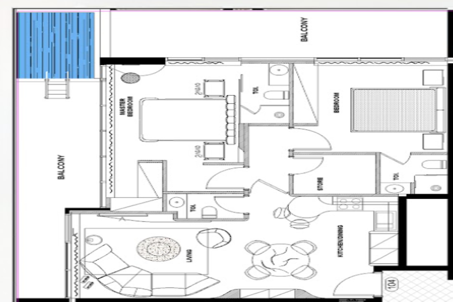 Beide Schlafzimmer sind groß und komfortabel und bieten viel Platz für Ruhe und Entspannung. Die Wohnung verfügt außerdem über ein stilvolles Badezimmer mit modernen Armaturen.