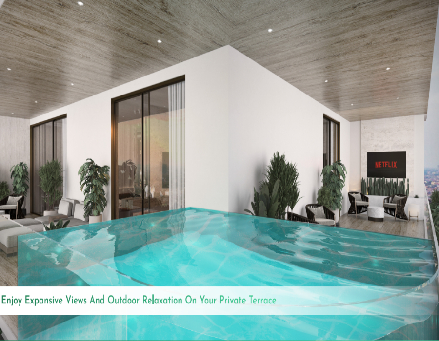 Stilvolle Zwei-Zimmer-Wohnung mit Pool in modernem Design