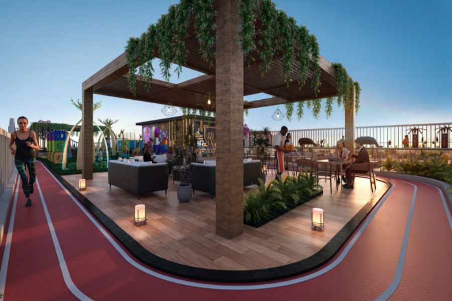 Fitnessbegeisterte werden den modernen Fitnessraum und das überdachte Fitnessstudio, die Sauna, das Dampfbad, die Yoga-Bereiche und die Joggingstrecken zu schätzen wissen, die den Bewohnern zur Verfügung stehen. Der Infinity-Pool bietet einen erfrischenden Ort zum Schwimmen und Abkühlen, während die Lounge auf dem Dach der perfekte Ort zum Entspannen und Genießen der atemberaubenden Aussicht ist.