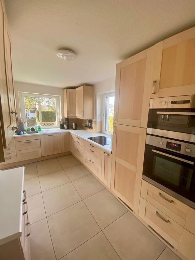 Willkommen in Ihrem neuen Zuhause! Diese Doppelhaushälfte in Möhringen bietet auf einer Wohnfläche von 164 m² alles, was das Familienherz begehrt. Das Haus wurde 2010 kernsaniert und präsentiert sich heute in einem tadellosen Zustand. Beim Betreten der Immobilie gelangen Sie in den großzügig gestalteten Eingangsbereich, von dem aus Sie Zugang zu allen Räumen im Erdgeschoss haben. Das weitläufige Wohnzimmer, welches sich über die gesamte Länge des Hauses erstreckt, eignet sich perfekt zum gemeinsamen Relaxen und Essen. Die große Terrasse, die vom Wohnzimmer sowie der geräumigen Küche mit Essbereich erreichbar ist, lädt zu gemütlichen Sommerabenden im Freien ein. Das Obergeschoss verfügt über drei gleichgroße Schlafzimmer und ein Bad mit Dusche und einer Waschmaschine. Ein Highlight ist das helle Dachgeschoss mit einer Tee-Küche und einem großzügigen Wohnraum, der flexibel genutzt werden kann. Zudem gibt es in dieser Etage ein komplett ausgestattetes Bad mit Eckbadewanne. Der Keller bietet zusätzlichen Stauraum und beinhaltet auch zwei Hobbyräume und eine Waschküche.