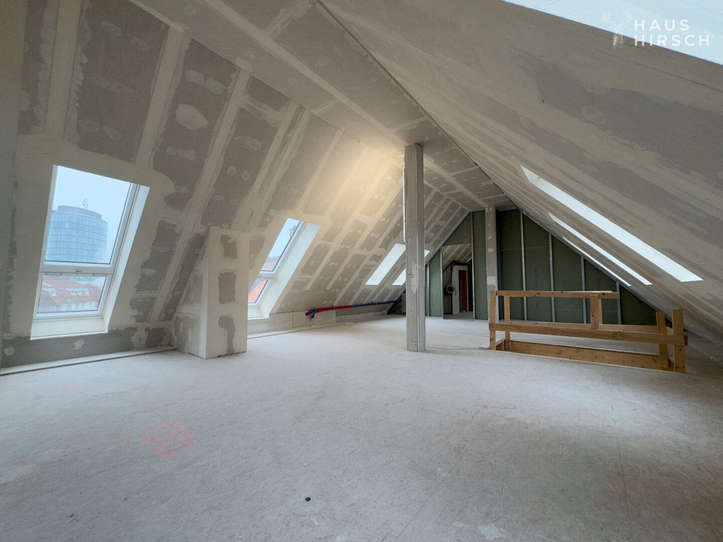 Willkommen in einer Liga für sich. In der Schulstraße , im pulsierenden Herzen von Neuhausen-Nymphenburg, bietet sich Ihnen eine Gelegenheit, die es auf dem Münchner Immobilienmarkt vielleicht nur einmal in einer Generation gibt: Der Erwerb der gesamten Westflügelseite im Dachgeschoss eines prachtvollen Gründerzeitbaus.