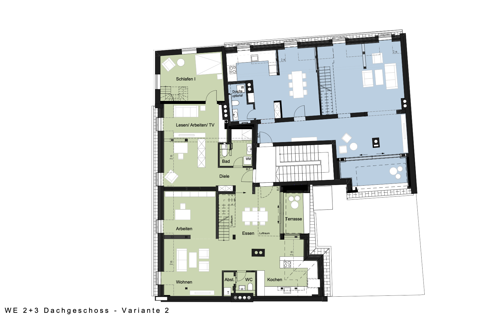 - Master-Suite & More: Der ca. 70,9 m² große Dachspitz (WE3) bietet enorme Flexibilität. Nutzen Sie ihn als luxuriösen Elternbereich mit Ankleide, als riesiges Atelier, Yoga-Studio oder teilen Sie ihn in zwei helle Kinderzimmer auf.