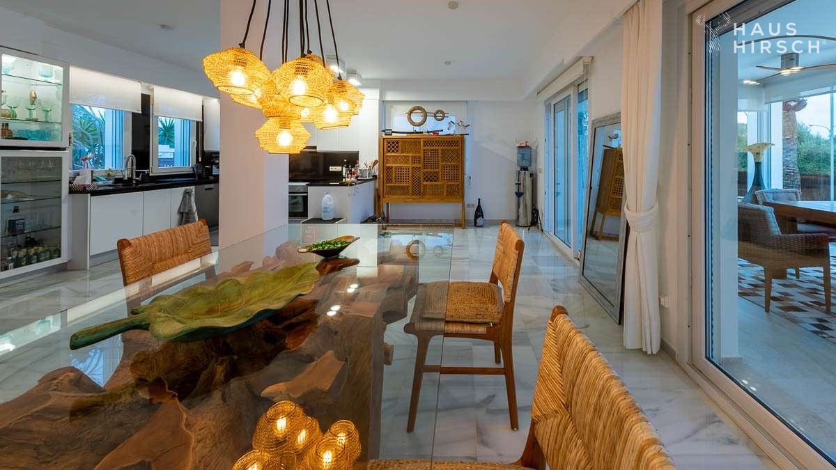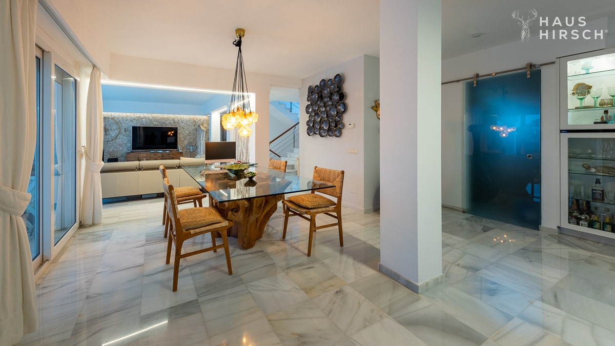 Diese mediterrane, renovierte Villa mit Vermietungslizenz befindet sich in einer ruhigen Villenwohnlage nahe Portopetro, einem luxuriösen Wohngebiet und beliebten Urlaubsort mit malerischen Badebuchten, kinderfreundlichen Sandstränden und mehreren Yachthäfen. Die Villa mit 490 m² Nutzfläche erstreckt sich über 3 Etagen und wurde im Jahr 2020 vollständig saniert. Sie liegt nur 150 m vom Meer entfernt und bietet viel Privatsphäre auf einem neu gestalteten Grundstück.