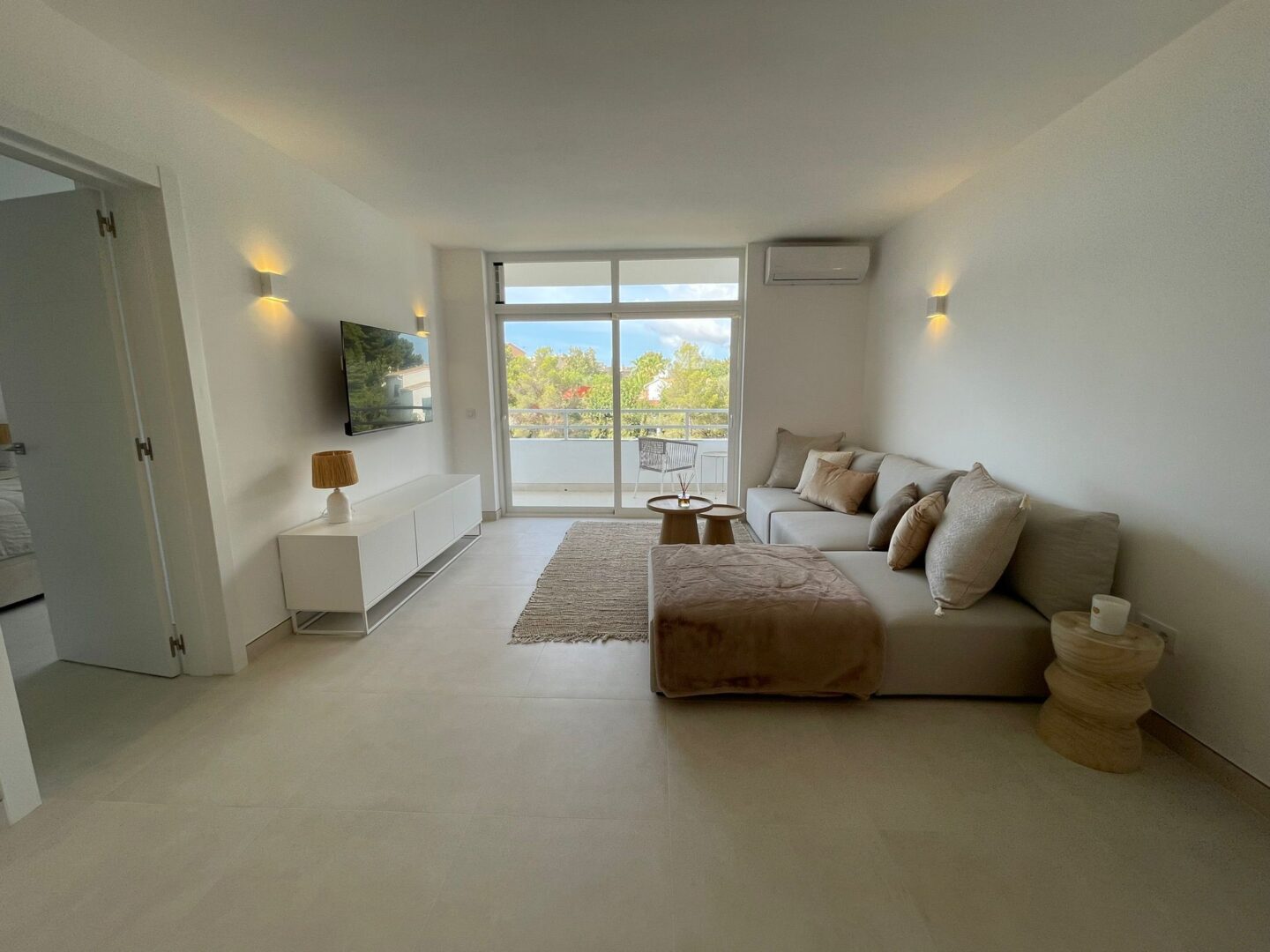 Willkommen in Ihrem stilvollen Apartment im Herzen von Portals Nous! Auf einer Wohnfläche von 84 m² erwartet Sie moderner Komfort in einer der begehrtesten Lagen der Insel. Diese exquisite Wohnung wurde 2024 umfassend renoviert und verbindet zeitlose Eleganz mit hochwertigen Materialien. Der helle und offene Wohnbereich führt direkt auf den großzügigen Balkon, der ideal ist, um den Tag bei einem Glas Wein ausklingen zu lassen. Die hochwertige Einbauküche bietet alles, was Sie für kulinarische Erlebnisse benötigen.