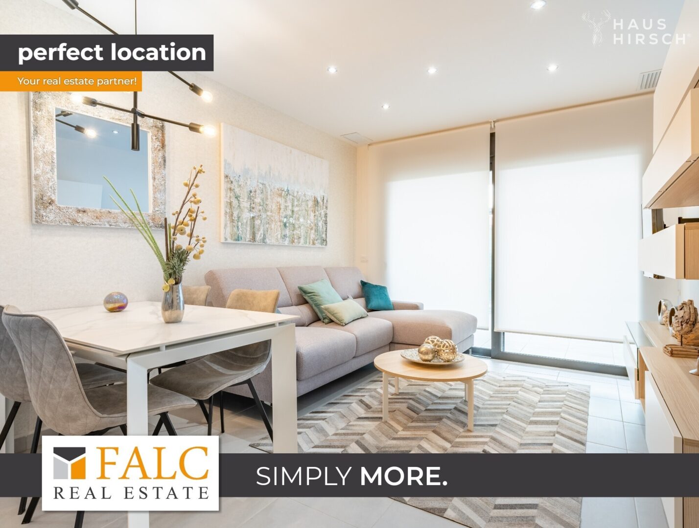 Dieses elegante Neubauprojekt im Designerstil befindet sich in unmittelbarer Nähe zu traumhaften und weitläufigen Sandstränden mit kristallklarem Wasser sowie zum Naturschutzgebiet Punta de n'Amer.