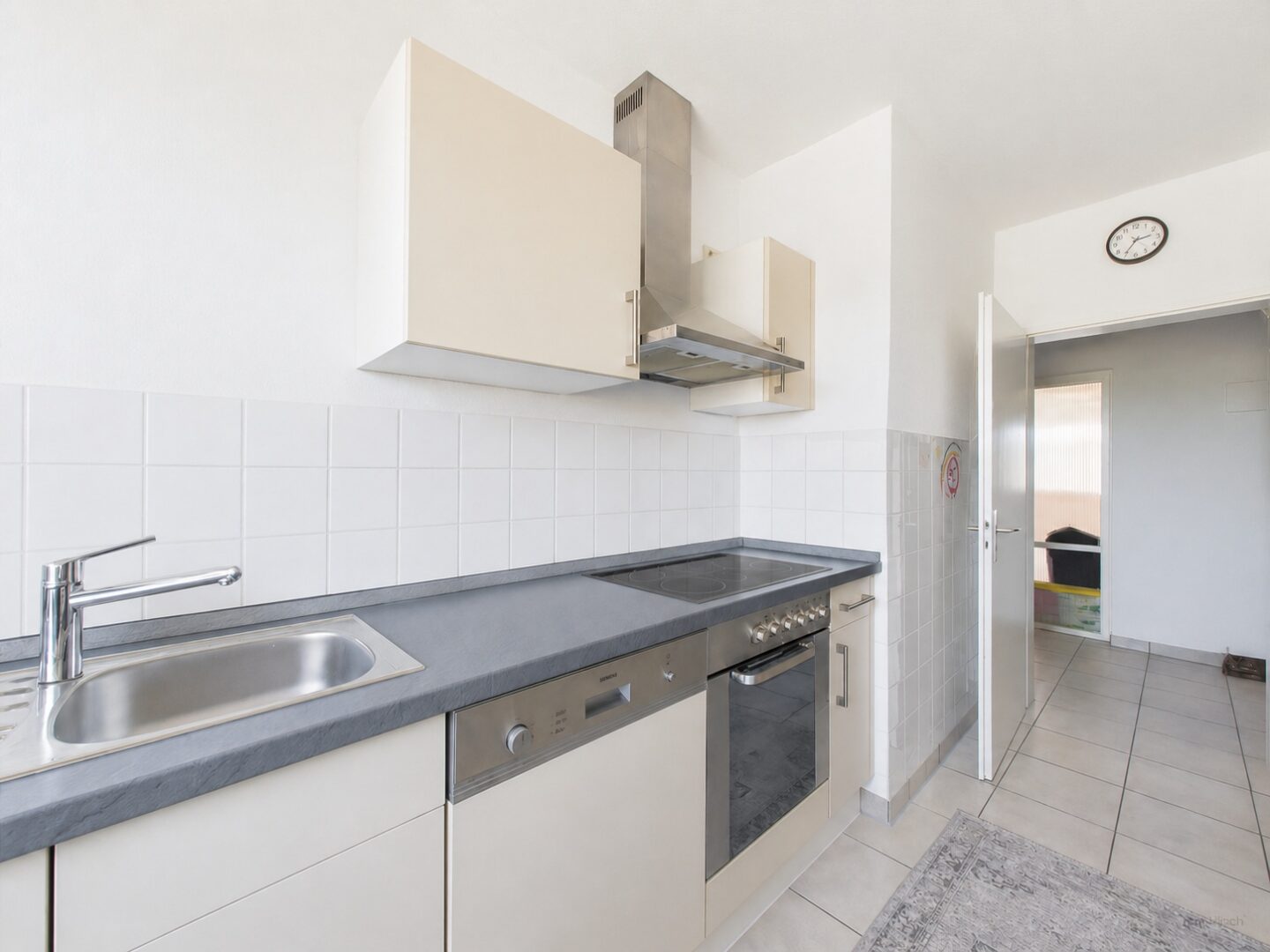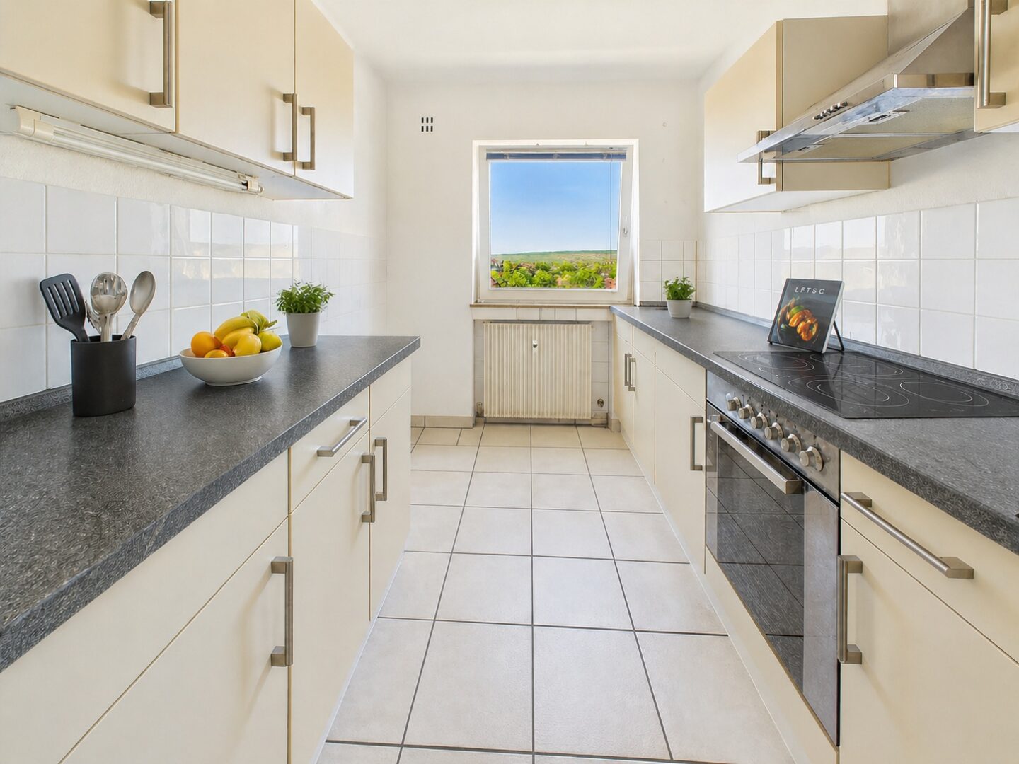Die vorhandene Einbauküche ist bereits im Kaufpreis enthalten und befindet sich in gutem Zustand. Das Badezimmer verfügt über ein Fenster sowie eine Duschwanne und bietet somit sowohl Tageslicht als auch Komfort. Zusätzlich steht ein separates WC zur Verfügung.