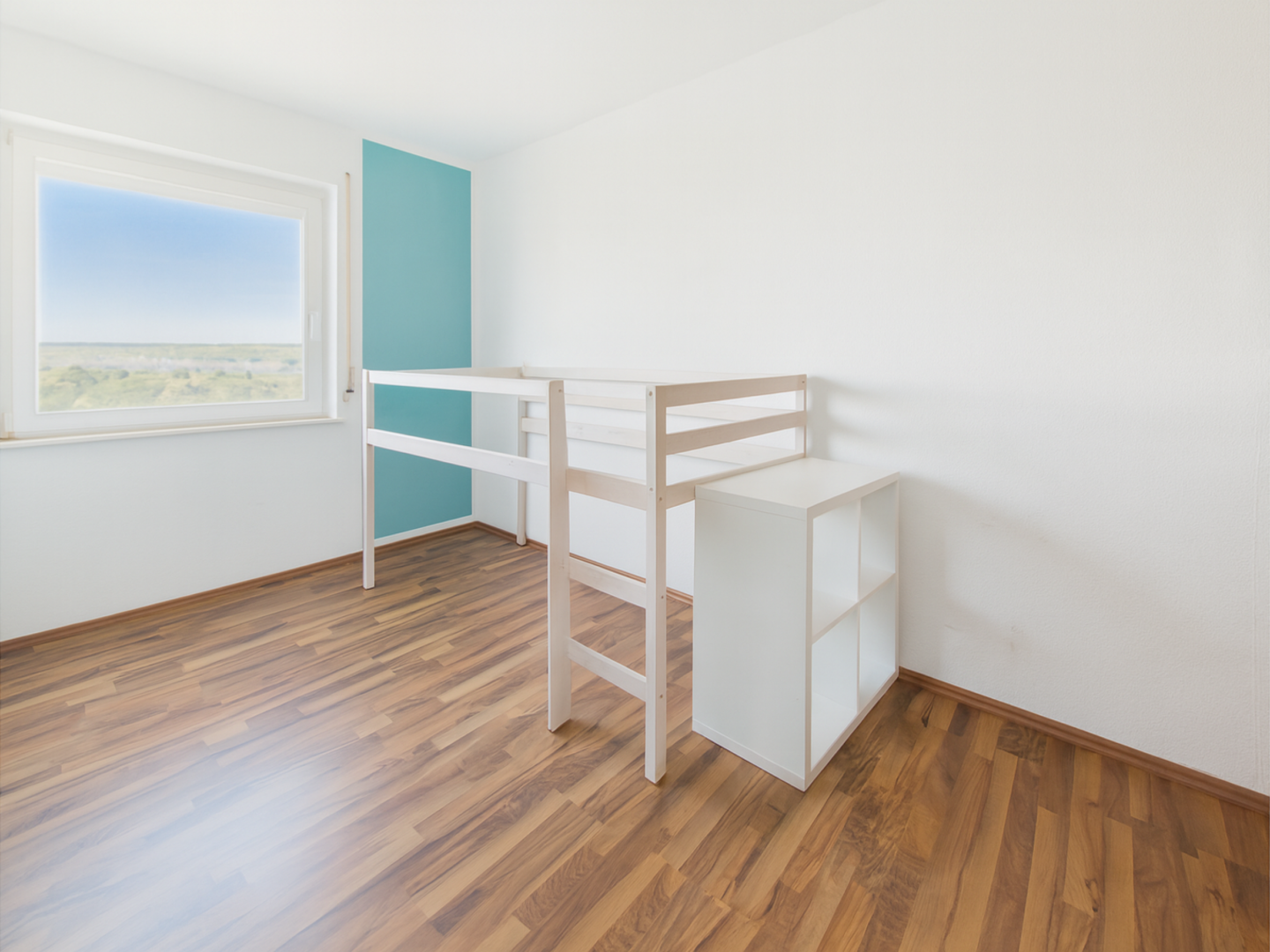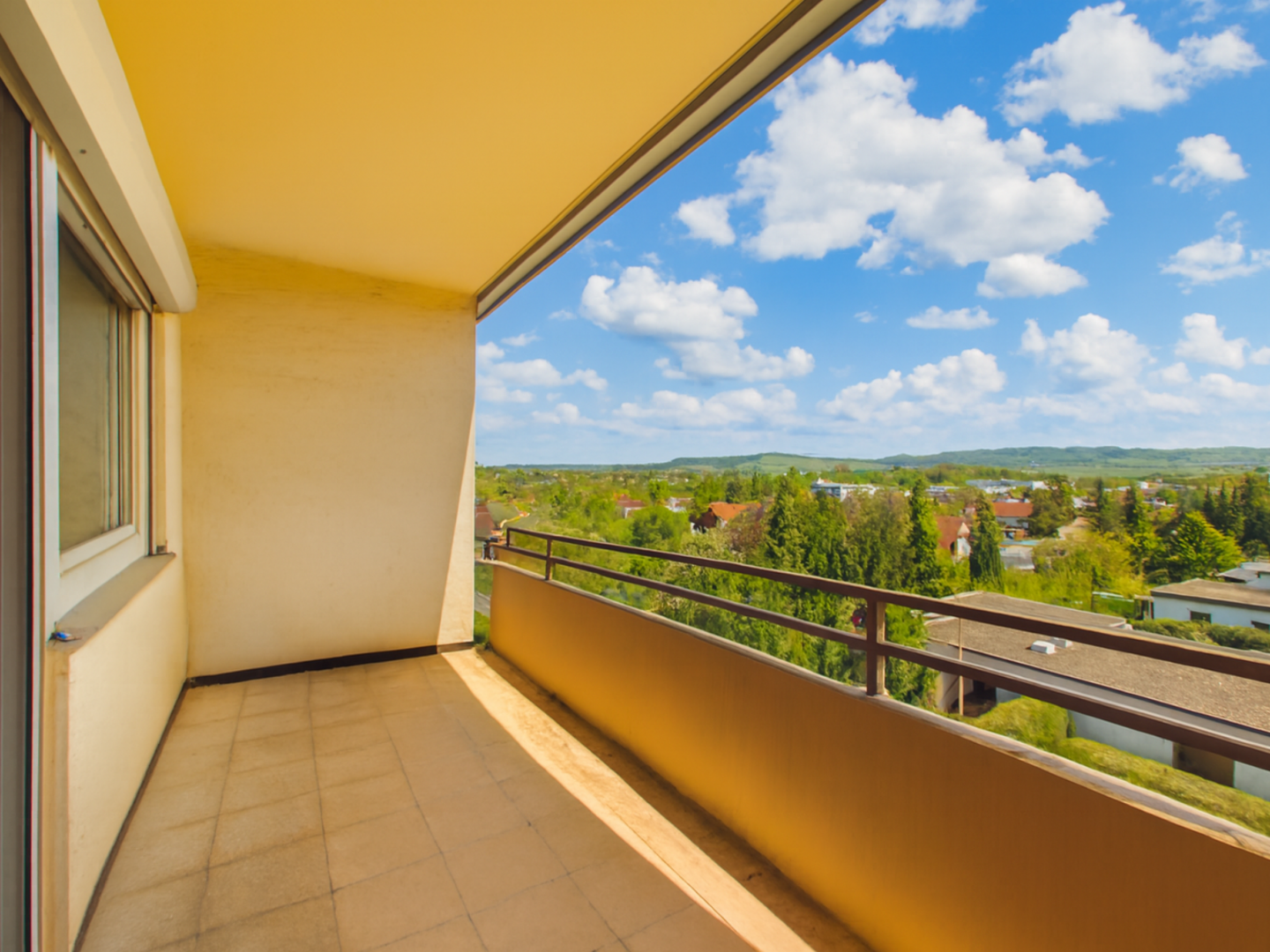 Die hellen Wohnräume schaffen durch große Fensterflächen eine freundliche und angenehme Wohnatmosphäre. Ein besonderes Highlight ist der Balkon, von dem aus sich ein schöner Blick ins Grüne genießen lässt – ideal für entspannte Stunden im Freien.