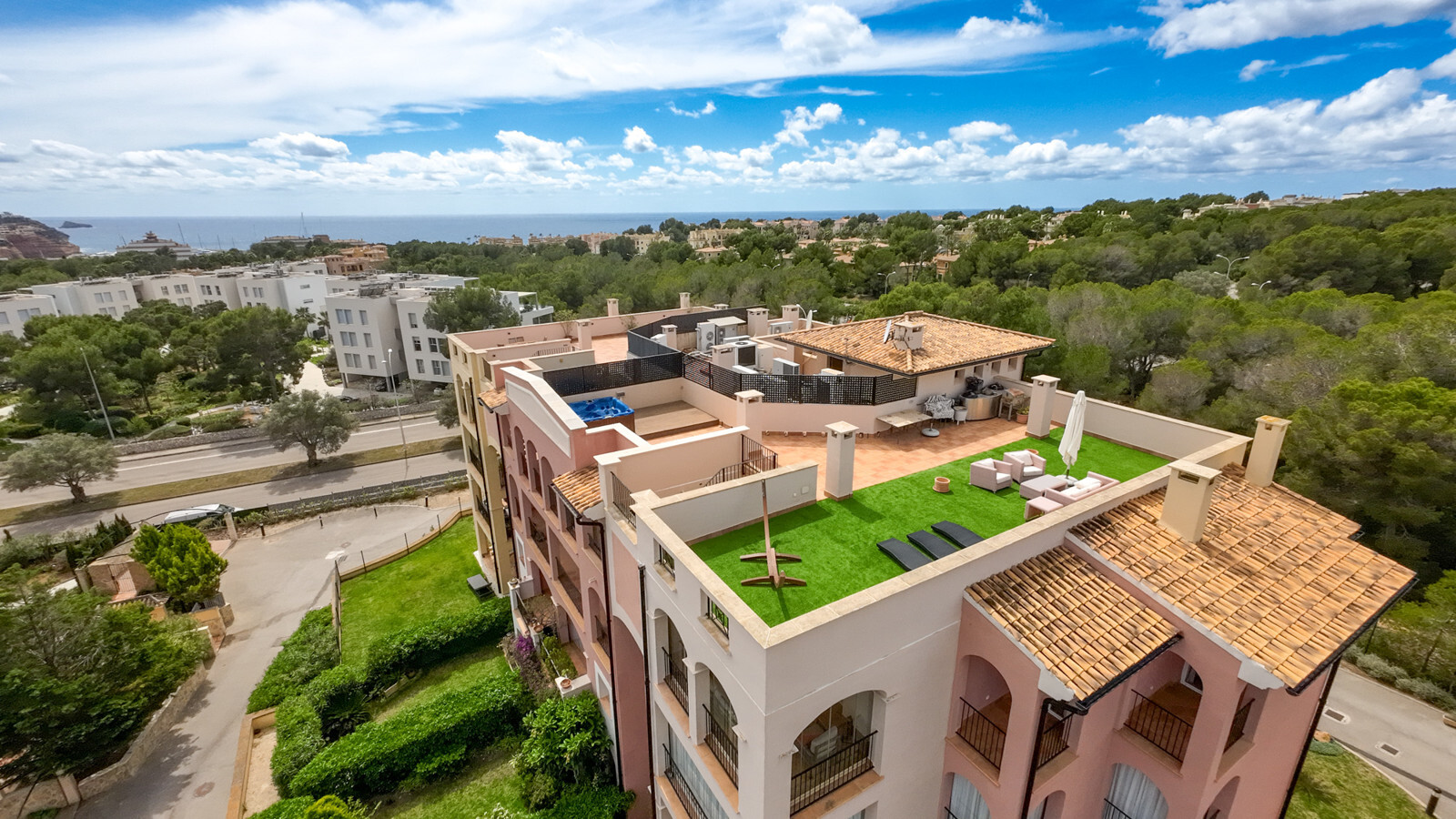 Tauchen Sie ein in die Welt von Ses Penyes Rotges Golf und lassen Sie sich von dem einzigartigen Golf- und Meerblick verzaubern. Ein exklusives Wohngefühl erwartet Sie hier, gepaart mit dem Komfort und Luxus eines modernen Lebensstils. Erleben Sie den mediterranen Flair und das besondere Ambiente, das dieses Penthouse zu bieten hat. Willkommen Zuhause!