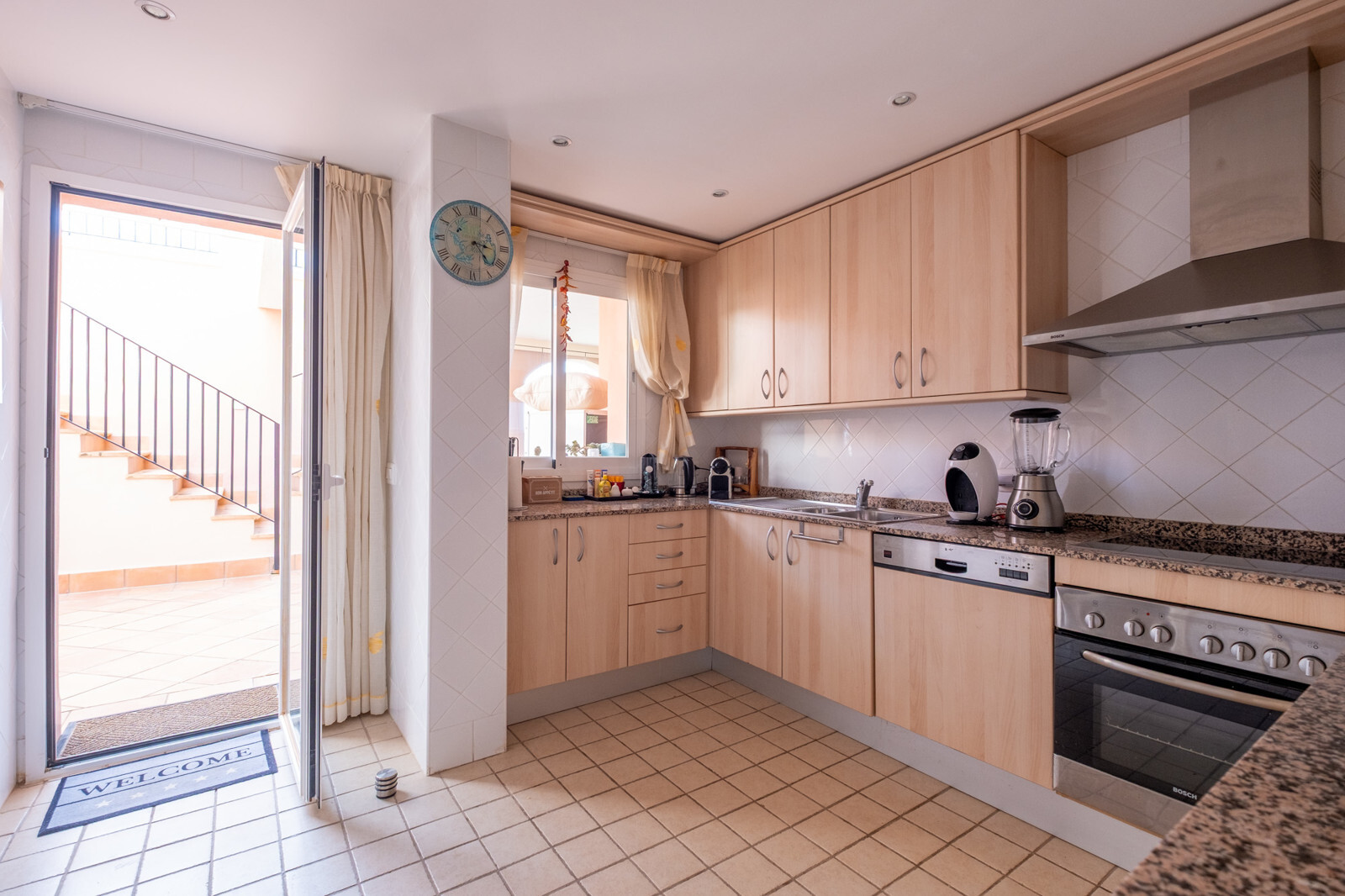 Willkommen in der exklusiven Wohnanlage Ses Penyes Rotges Golf! Inmitten von üppigen Gärten und mit direktem Zugang zu den Golfplätzen erwartet Sie hier ein mediterraner Lebensstil der Extraklasse. Das Penthouse, das wir Ihnen heute präsentieren dürfen, bietet nicht nur einen atemberaubenden Blick auf den Garten, den Pool, den Golfplatz und das Meer, sondern auch einen großzügigen Wohnbereich mit viel Tageslicht. Die voll ausgestattete Küche mit Hauswirtschaftsraum sorgt für entspanntes Kochen und Genießen.