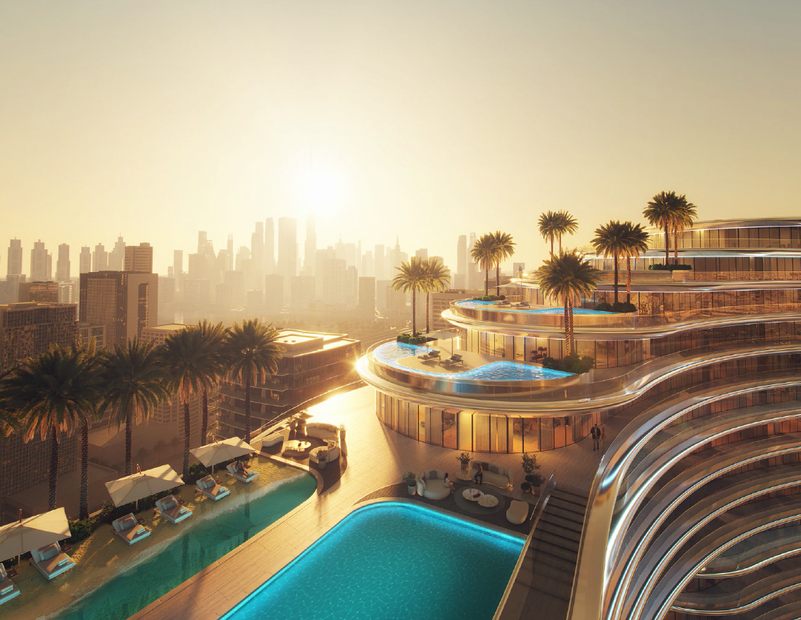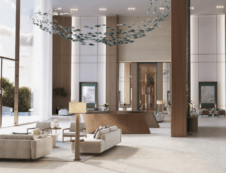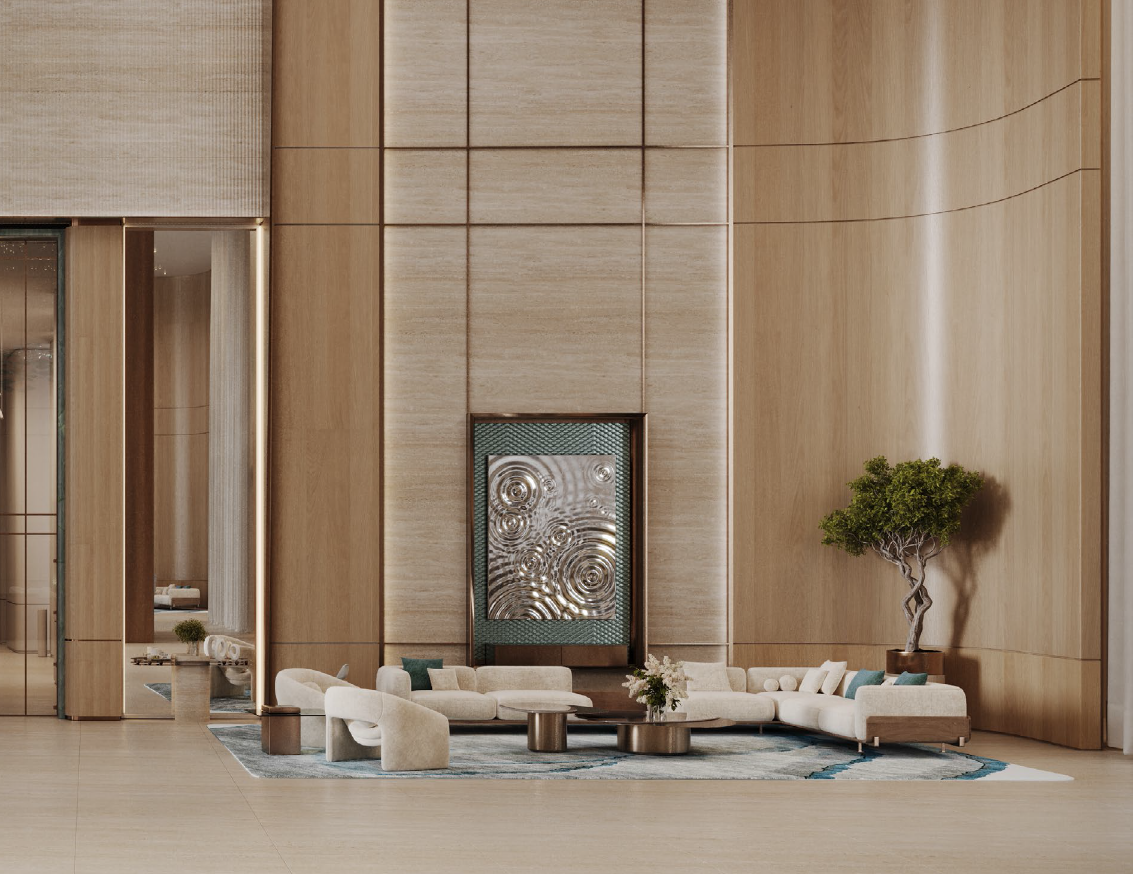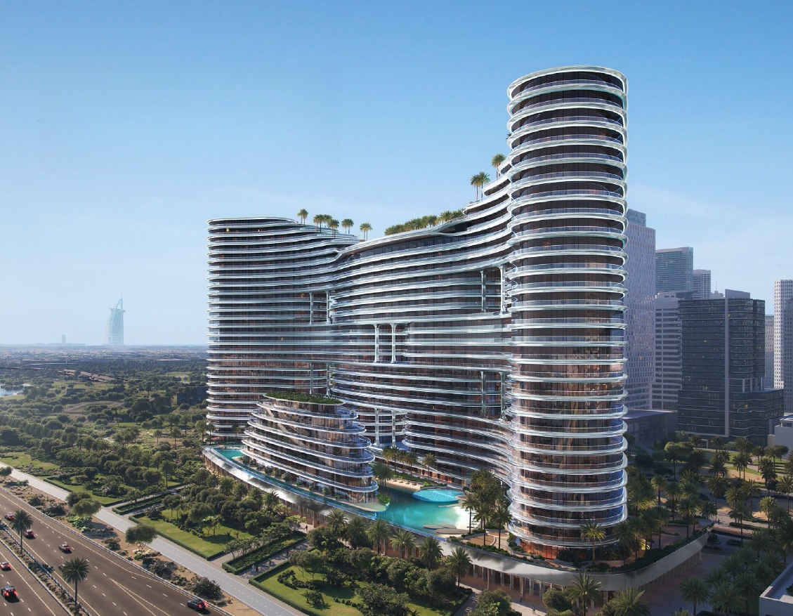 Wir betreten das 25-stöckige Gebäude mit seiner einzigartigen Fassade, die wie eine fließende architektonische Skulptur aussieht, inspiriert von der Anmut des Wassers. Die wellenförmige Fassade schimmert im Einklang mit dem sich ständig verändernden Himmel Dubais. Die Lage in Business Bay, nur wenige Schritte vom Dubai Water Canal entfernt und nur wenige Minuten von der Innenstadt entfernt, bietet die perfekte Balance zwischen urbaner Energie und ruhiger Wasserlage.