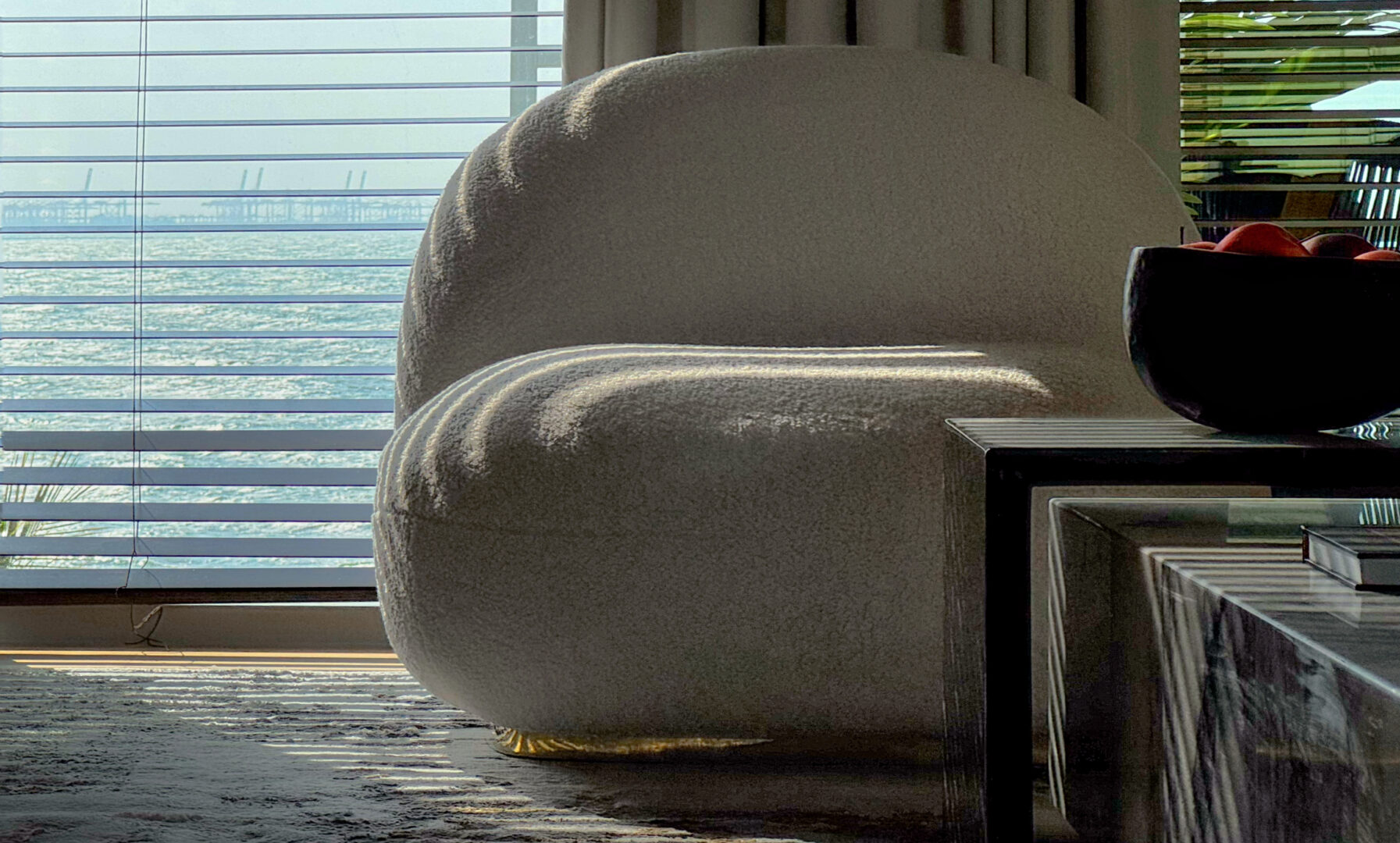 Schon beim Betreten werden Sie von einem großzügigen Wohnbereich mit stilvoller Einrichtung empfangen. Die bodentiefen Fenster lassen viel Licht herein und bieten einen atemberaubenden Blick auf das azurblaue Meer. Hier können Sie entspannen und die spektakulären Sonnenuntergänge genießen.