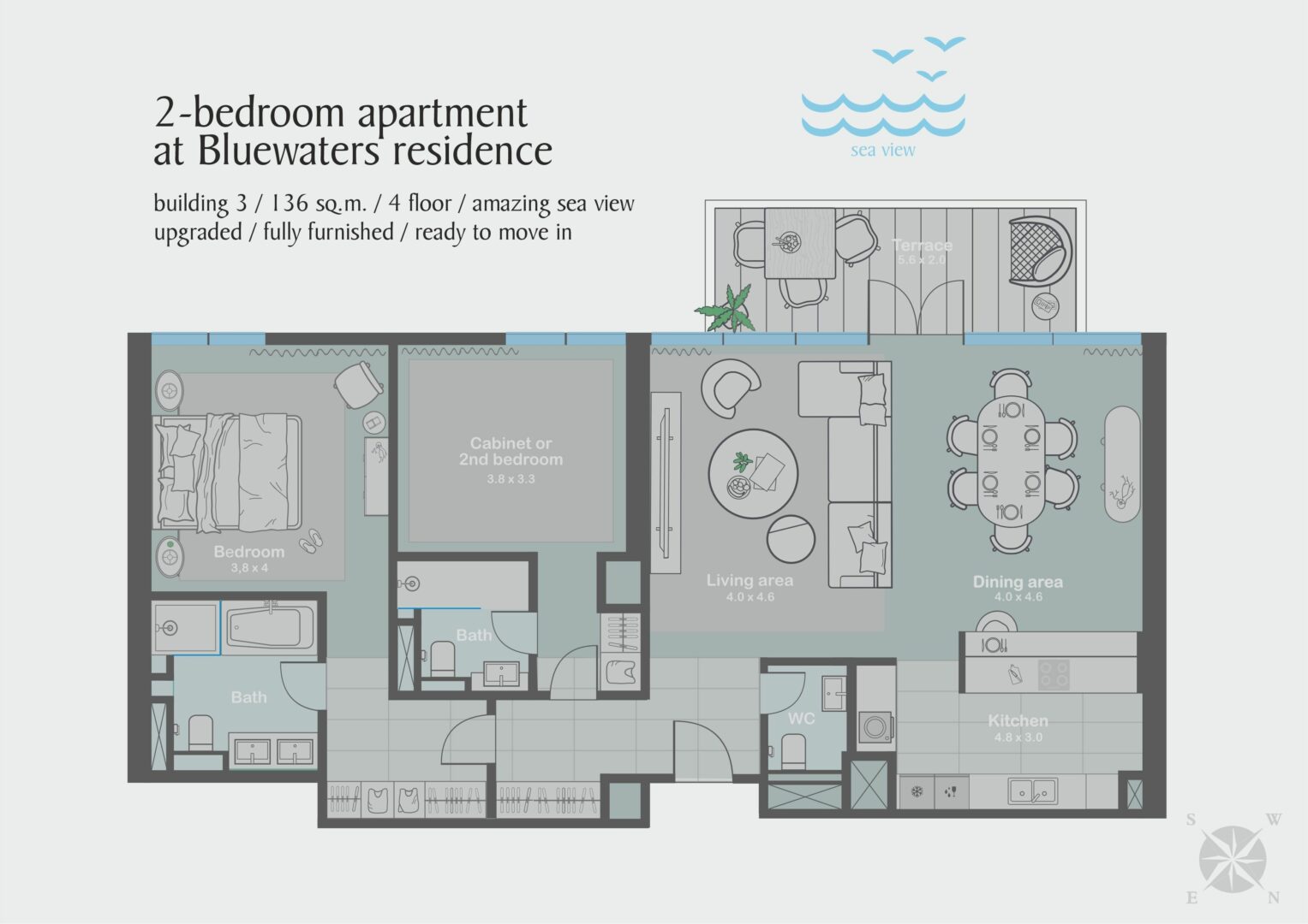 Genießen Sie die Annehmlichkeiten, die die Bluewaters Residence 3 zu bieten hat, und lassen Sie sich von der Schönheit des Meerblicks begeistern. Dieses Apartment ist nicht nur ein Ort zum Wohnen, sondern ein Ort, an dem Sie sich wahrhaft zu Hause fühlen werden. Erleben Sie das perfekte Zusammenspiel von Luxus und Lässigkeit in dieser einzigartigen Immobilie.