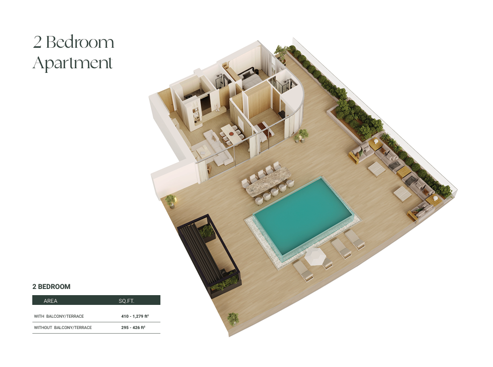 Für die kleinen Bewohner gibt es einen separaten Kids Swimming Pool und einen Bereich mit Sonnenliegen. Der Boardwalk lädt zu entspannten Spaziergängen ein, während sich Fitnessbegeisterte im Outdoor Gym und Indoor Gym auspowern können.