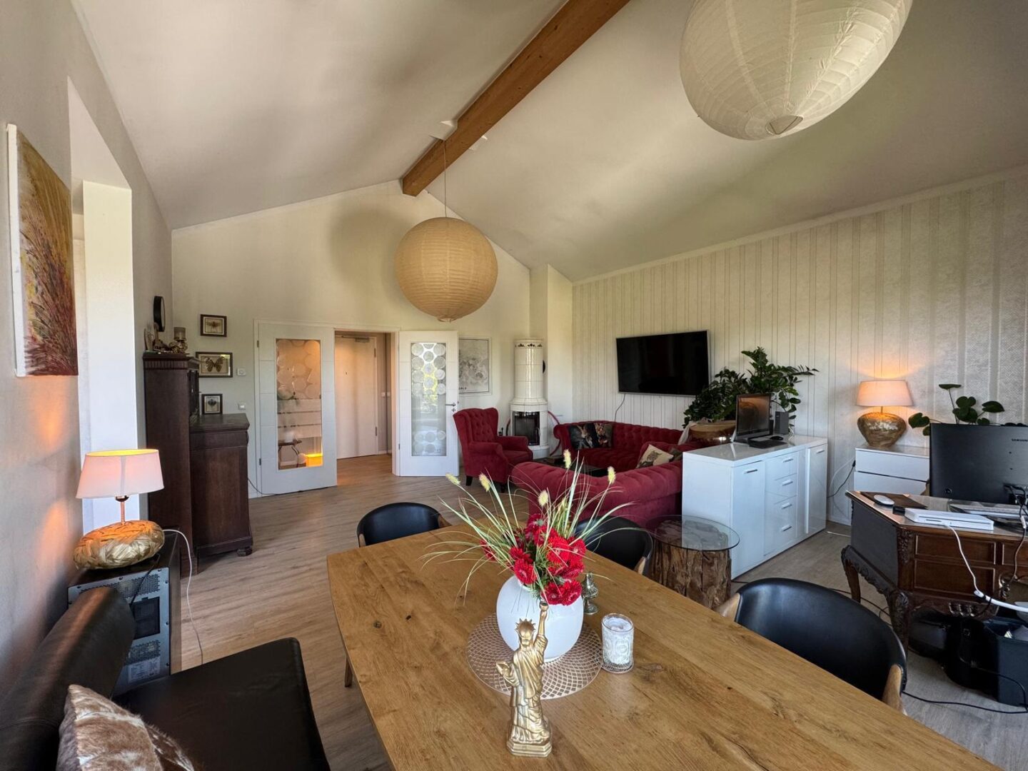 Willkommen in Ihrem neuen Zuhause! Diese traumhafte Penthouse-Wohnung hält alles bereit, was Sie sich nur wünschen können. Lassen Sie sich von den hellen, lichtdurchfluteten Räumen begeistern. Der offene Wohnbereich mit Kamin lädt zum Entspannen ein, während die ebenerdige Dusche und das Doppelwaschbecken im Badezimmer für pure Erholung sorgen. Die frei stehende Badewanne lädt zu einem entspannten Bad ein.