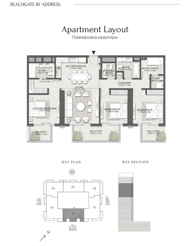 ID: BeachGate By Addres 3BHK APT 3202 - HA2525401