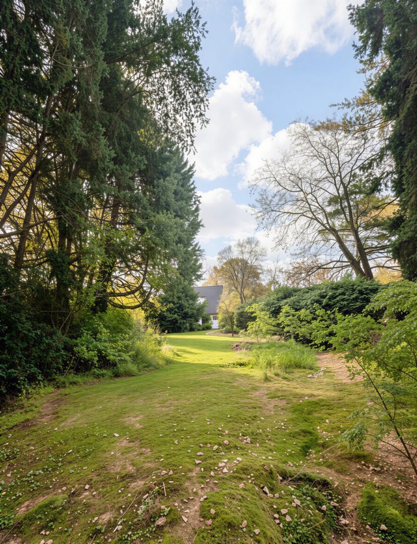 Der hintere Grundstücksbereich verfügt über circa 1.000 m² und kann auf einer Fläche von 100 m² bebaut werden. Es gilt der Bebauungsplan Bergstedt 14!