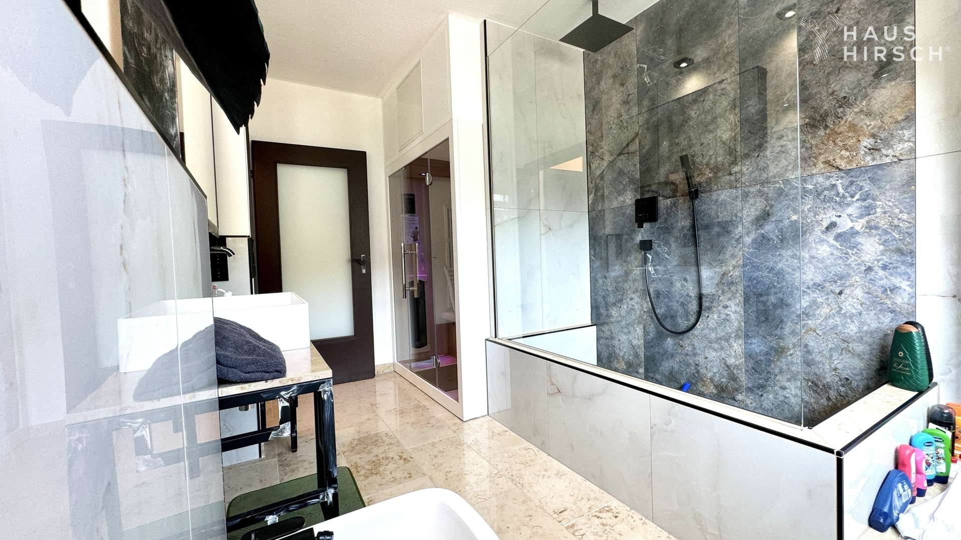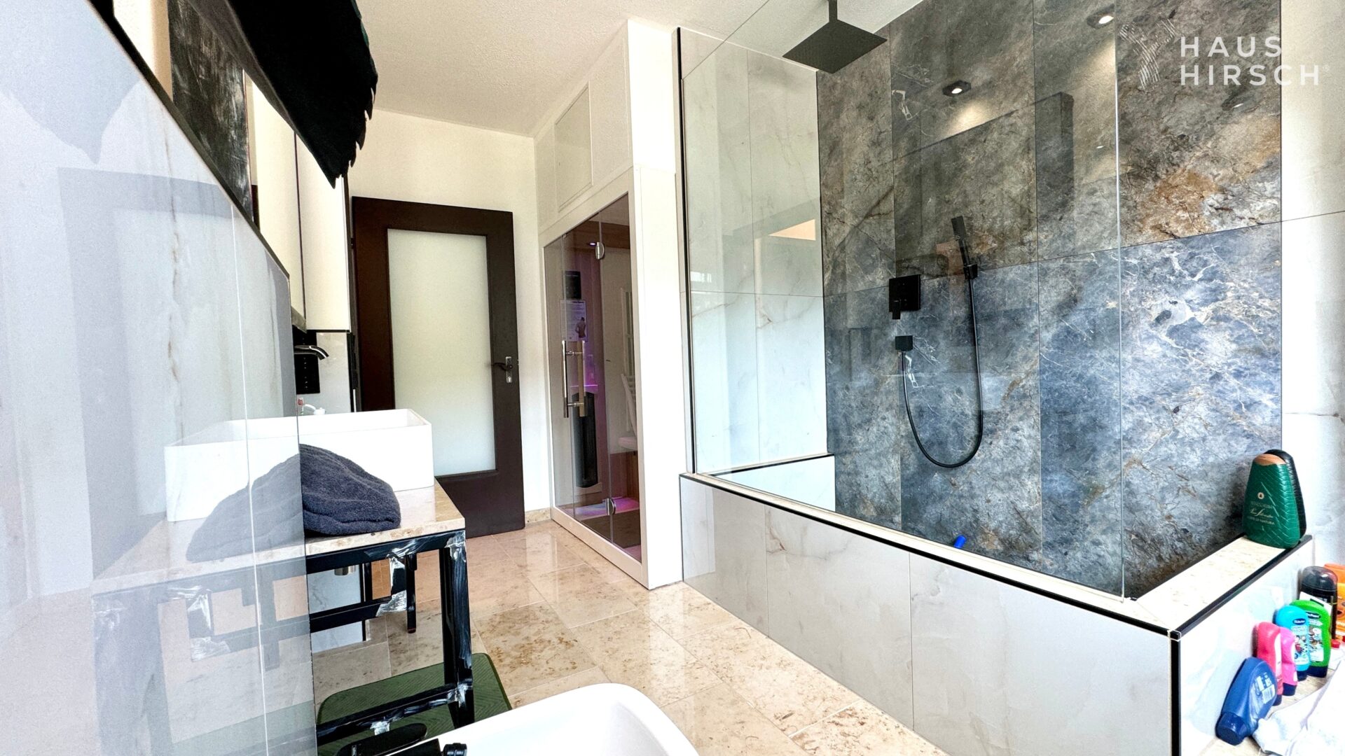 Genießen Sie entspannende Momente im Duschbad im 1. Obergeschoss, ausgestattet mit einer Regendusche, Sauna, gezielten LED-Spots und einem Bidet. Das Duschbad lässt sich zur einer Pool-Wanne mit wenigen Handgriffen umfunktionieren.