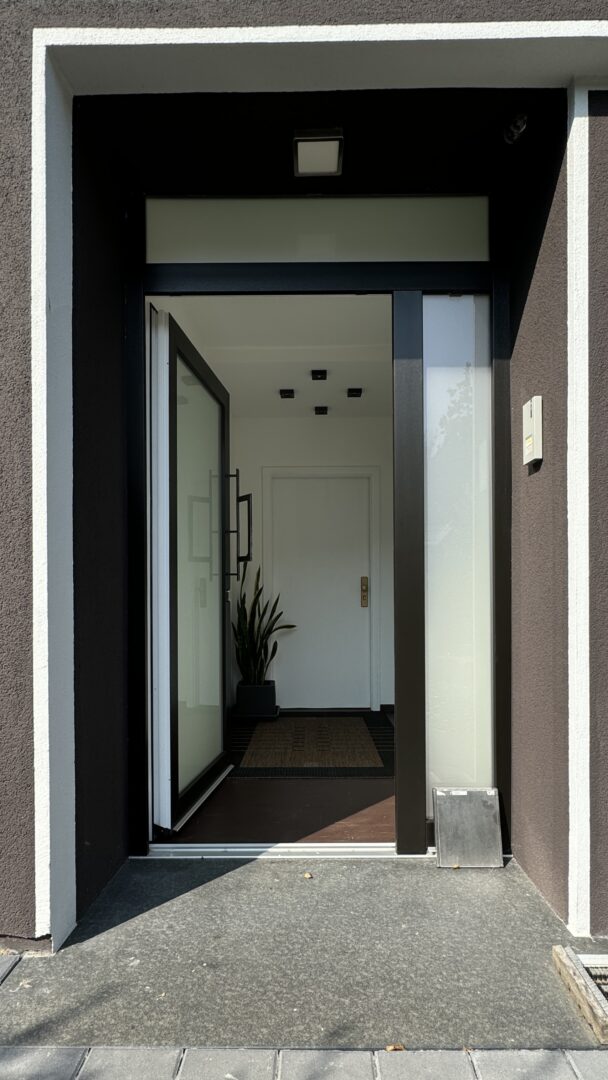 - Filigraner Eingangsbereich mit Backsteinoptik und LEDs, einzigartiger