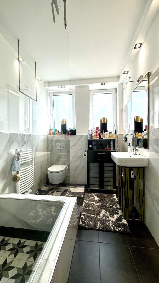 Im Erdgeschoss befindet sich die Einliegerwohnung mit integrierter neuwertiger Küche, welche ebenfalls im Kaufpreis enthalten ist. Auch hier sind alle Räume kernsaniert worden. Die Wohnung ist ebenfalls mit einem hochwertigen Duschbad ausgestattet.