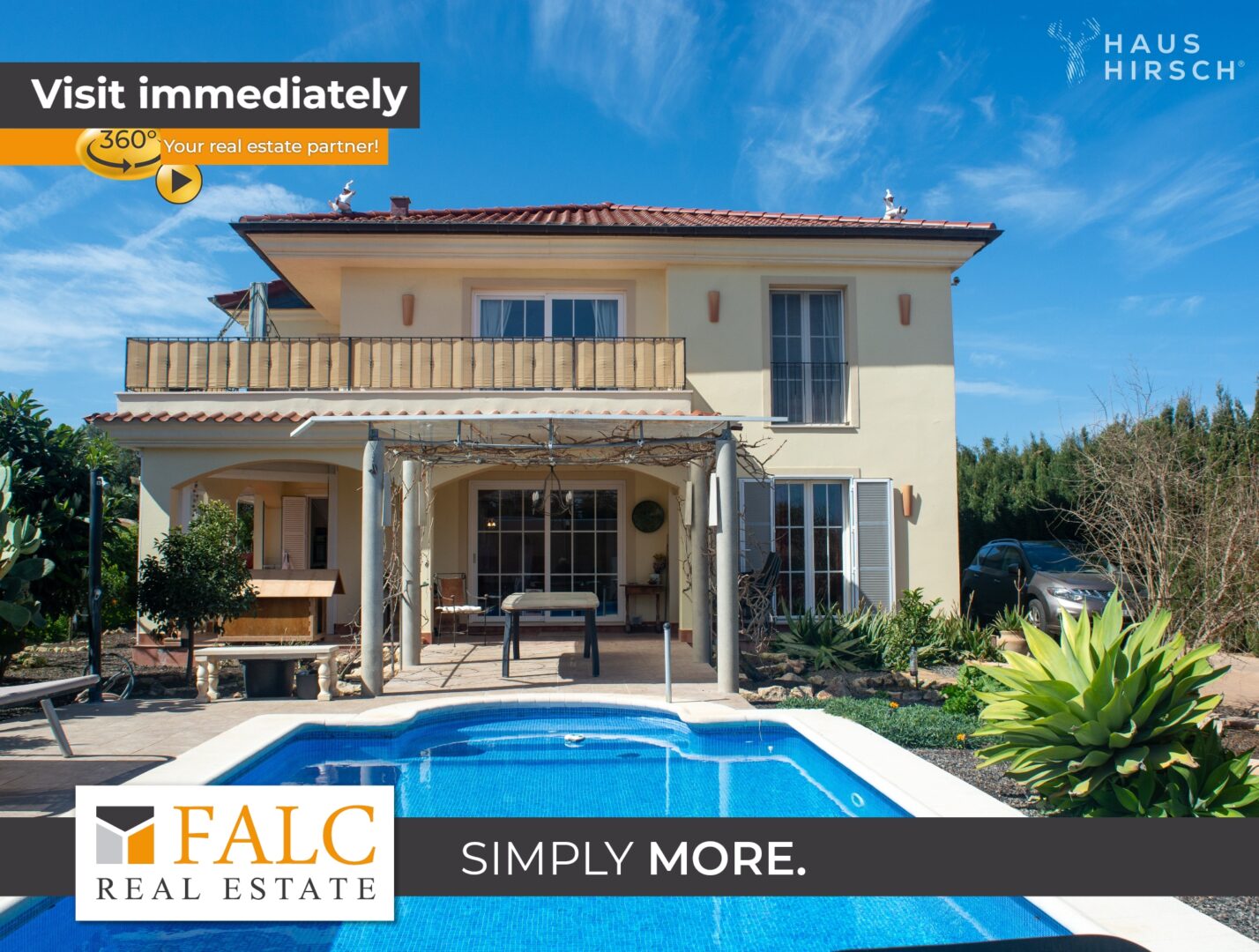 Hier betreten Sie eine zweigeschossige Villa von einer Qualität, die Sie überzeugen wird. Sehr elegant und stolz steht das Haus inmitten eines liebevoll angelegten Gartens. Im Erdgeschoss verteilen sich der Eingangsbereich, das große Wohn-/Esszimmer mit Blick auf den Pool, das Master-Schlafzimmer mit großem Bad en Suite, sowie zwei weitere Schlafzimmer und ein Duschbad. Nicht zu vergessen die durchgestylte Küche mit Essecke und einem Ausgang auf die überdachte Terrasse. Vom Wohn- und dem Schlafbereich haben Sie ebenfalls Zugang zu einer überdachten Terrasse, die teilweise mit Weinreben überwachsen ist und natürlich dem Pool.