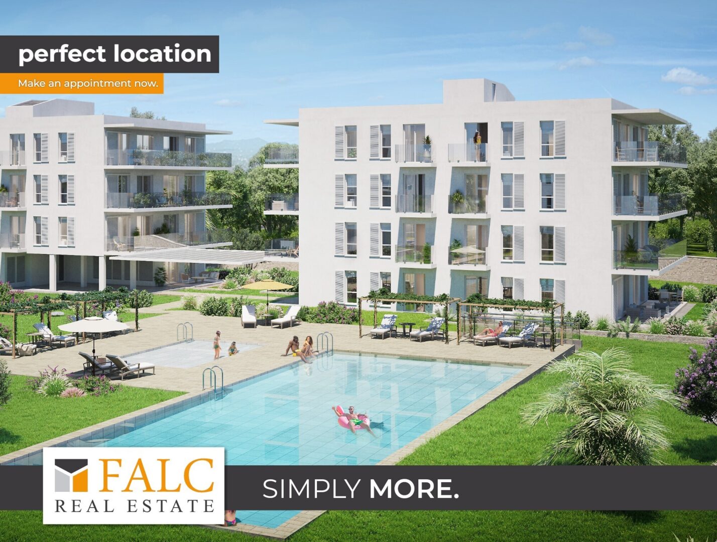 Reservieren Sie für sich am besten jetzt eine luxuriöse Erdgeschoss-Wohnung mit großer Terrasse und ca. 80 m² Garten. Ein Gemeinschaftspool im mediterran angelegten Garten gehört natürlich ebenfalls dazu.