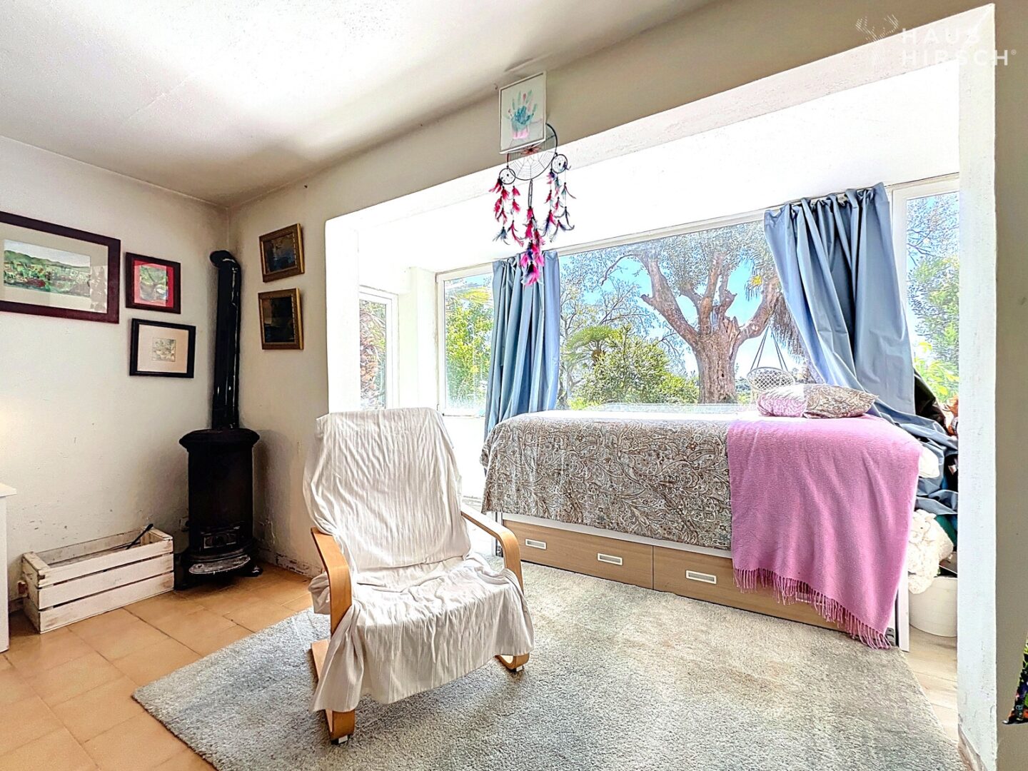Das Haupthaus birgt vier Schlafzimmer – zwei davon mit eigenem Bad, eines verbunden mit einem stillen Arbeitsraum – und drei Bäder insgesamt; eines ist bedacht auf jene, die in ihrer Bewegung eingeschränkt sind. Abseits und doch nah liegt ein eigenes Studio, mit eigenem Bad und Ankleide, bestimmt als stille Zuflucht oder Hort der Kreativität.