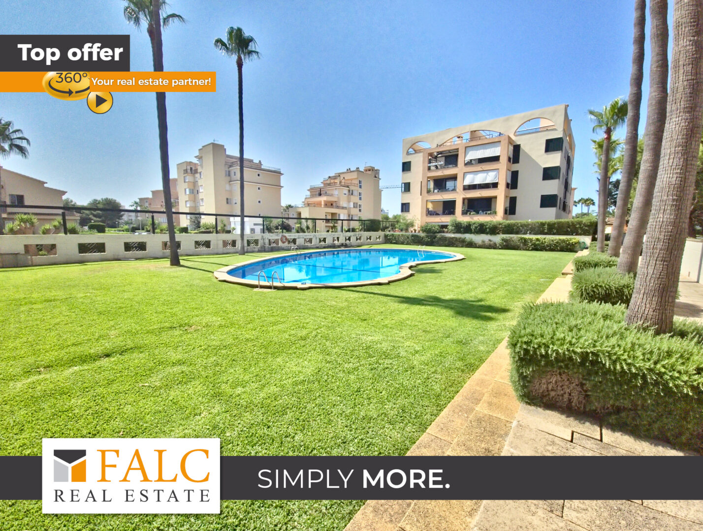 Ein absolutes Highlight ist der Zugang zum gepflegten Gemeinschaftsgarten mit großzügigem Pool – ein Ort zum Entspannen, Spielen und Erholen. Während Kinder sicher im Grünen toben, genießen Erwachsene die Ruhe unter Palmen oder ein erfrischendes Bad.