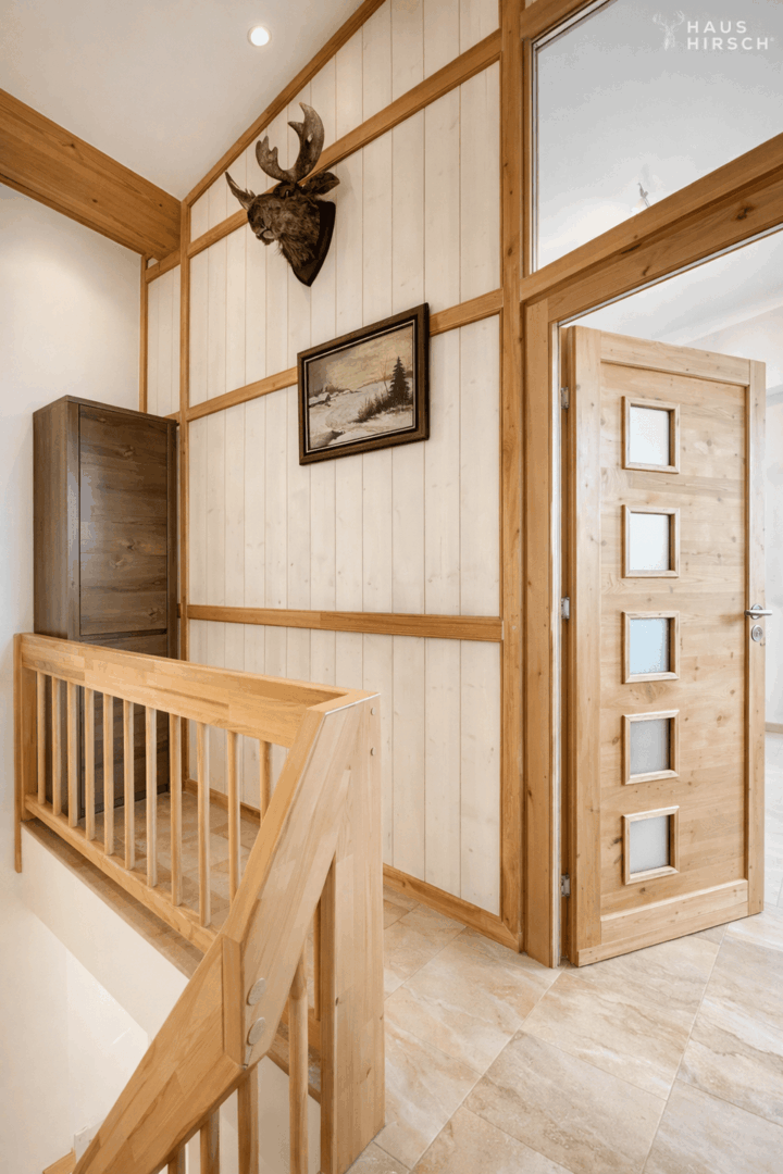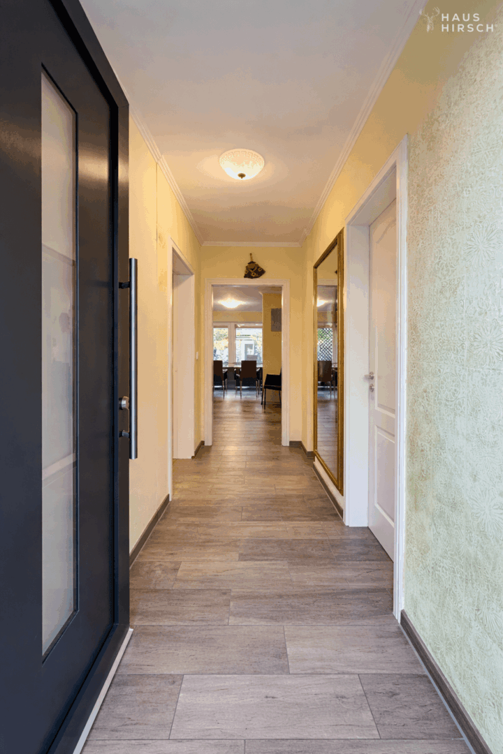 • Fliesen in Holzoptik im gesamten Erdgeschoss