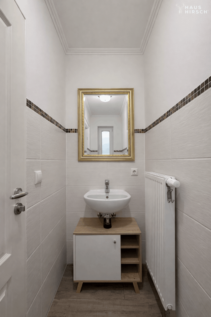 Schon der kleine, geschmackvoll gestaltete Vorgarten vermittelt einen freundlichen und einladenden ersten Eindruck. Im Erdgeschoss empfängt Sie ein kompakter Eingangsflur, von dem aus sowohl die separate Küche als auch das lichtdurchflutete Wohnzimmer zugänglich sind. Der Wohnbereich öffnet sich zur Terrasse, die harmonisch in den Garten übergeht und einen wunderbaren Rahmen für entspannte Stunden im Freien schafft. Ein Gäste-WC auf dieser Ebene ergänzt den Wohnkomfort.