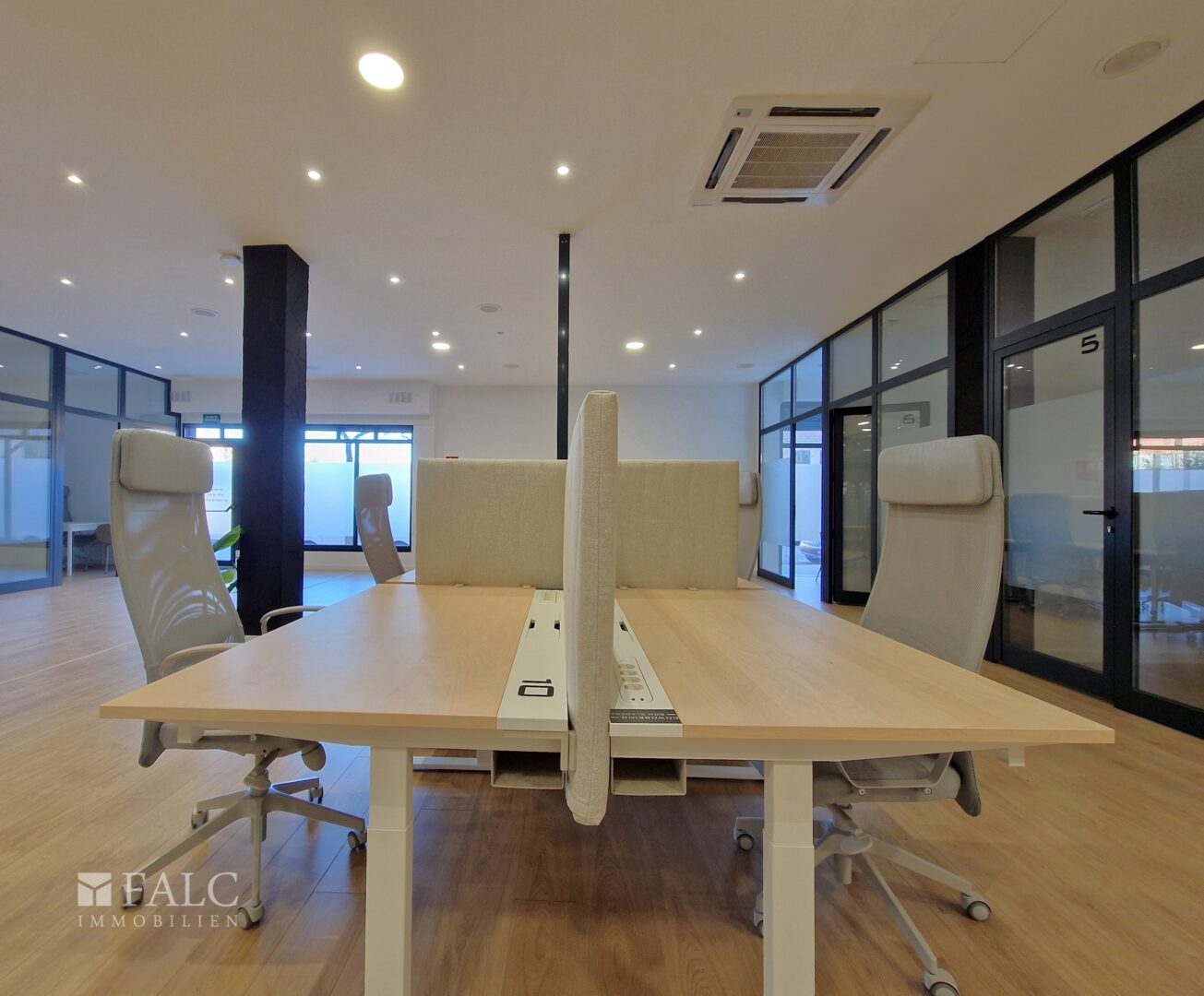 Moderne Büroräume im Zentrum von Palma de Mallorca (07009) bieten flexible und gut ausgestattete Arbeitsbereiche. Die Mietpreise beginnen bei 180 EUR für einen Einzelarbeitsplatz. Ein Büroraum von 6 m² kostet warm 380 EUR und ein Büroraum von 12 m² kostet 750 EUR pro Monat.
