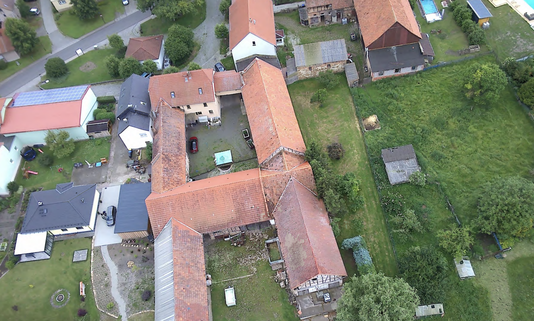 Zum Verkauf steht ein vielseitig nutzbarer Vierseitenhof mit umfangreichem Bestands- und Entwicklungspotenzial in Rehestädt (Ilm-Kreis). Das Objekt befindet sich auf einem ca. 3.730 m² großen Grundstück und verfügt über eine derzeitige Gesamtnutzfläche von rund 1.590 m², bestehend aus Wohnflächen, ehemaligen Gewerbe- und Wirtschaftsbereichen sowie Nebenflächen.