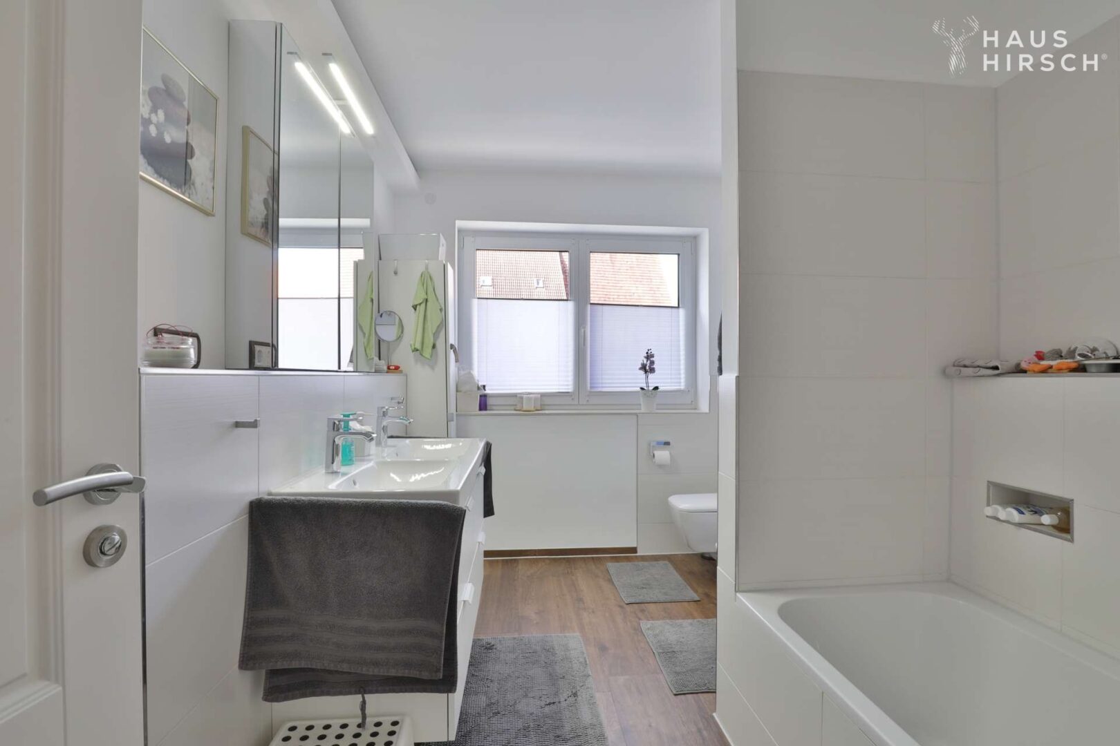 Die hochwertige Ausstattung dieses sanierten Hauses überzeugt auf ganzer Linie. Die Böden sind mit einer eleganten Kombination aus Fliesen, Laminat und Parkett gestaltet. Zur Immobilie gehören eine Doppel-Garage und Außenstellplätze, die für ausreichend Parkmöglichkeiten sorgen. Ein praktischer Kellerraum und Abstellraum und ein Gäste-WC ergänzen den Komfort.