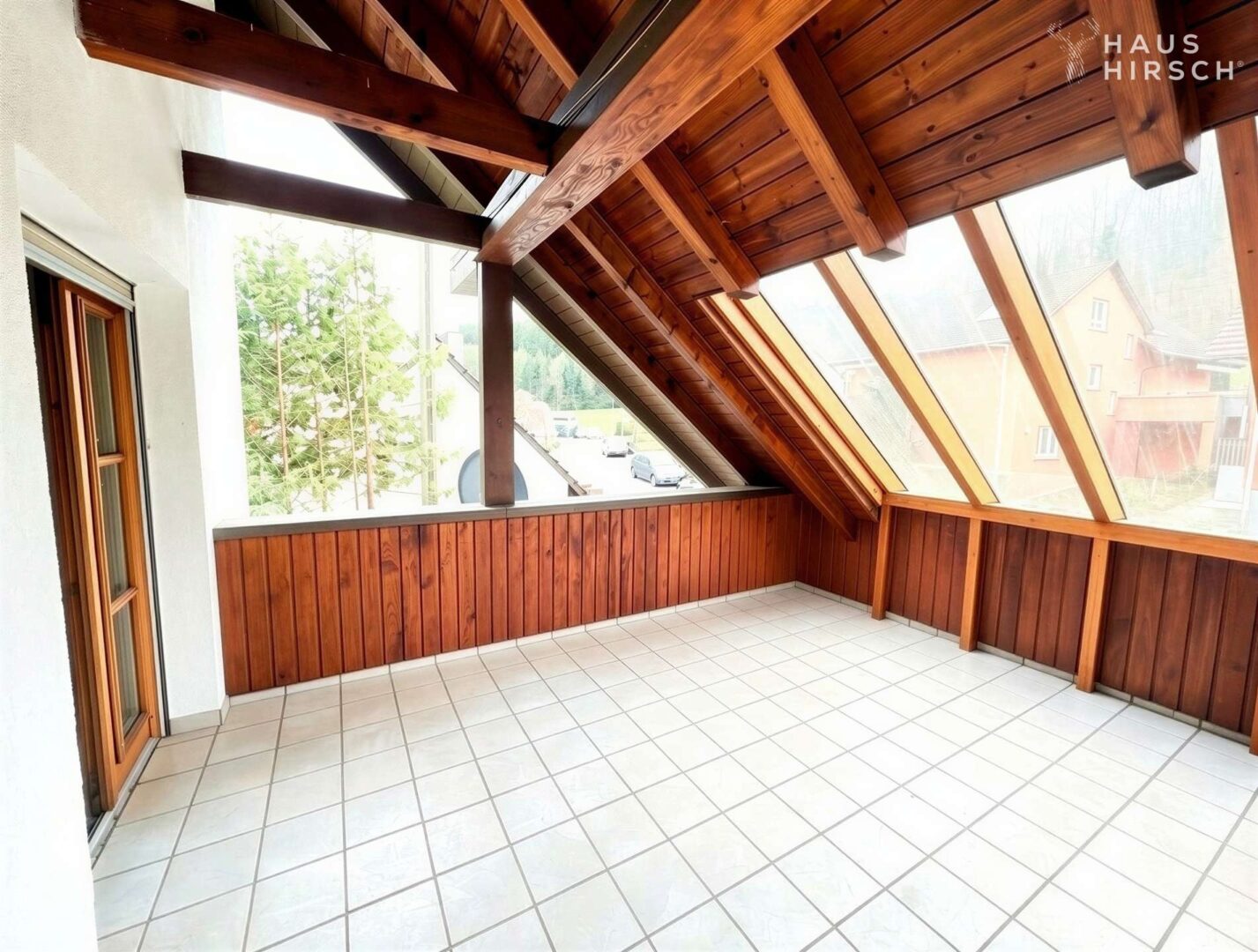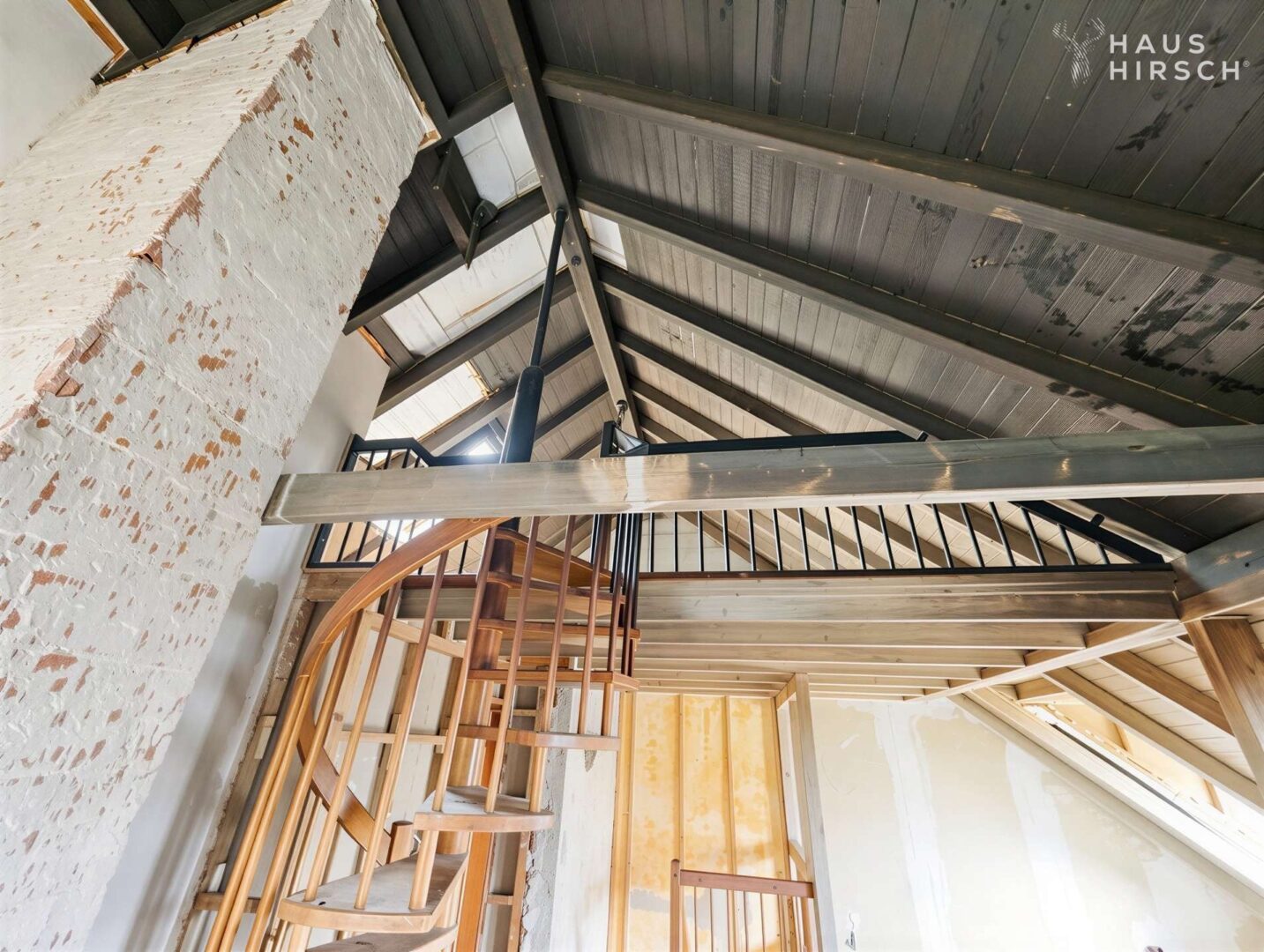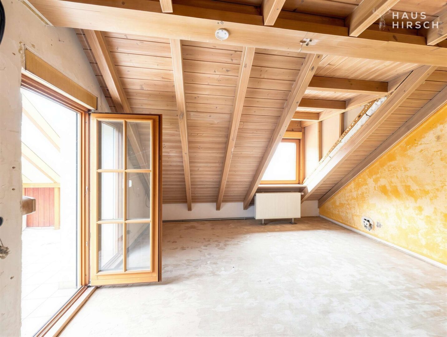 Das Herzstück im Obergeschoss bildet das etwa 45 Quadratmeter große Wohnzimmer mit Schwedenofen und Zugang zu Balkon und Loggia. Durch den Ausbau des Dachgeschosses lassen sich bis zu zwei weitere Zimmer integrieren. Nach Abschluss der Arbeiten wird der Marktwert der Immobilie auf schätzungsweise 550.000 Euro geschätzt – eine erstklassige Rendite Chance bei einem aktuellen Kaufpreis von 320.000 Euro.
