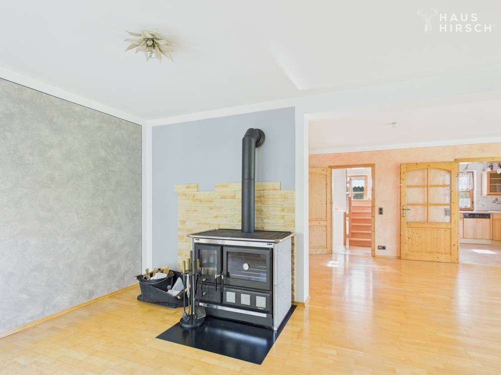 Bereits beim Eintreten empfängt Sie ein heller, freundlicher Eingangsbereich, der in den offenen Wohn- und Essbereich führt. Große Fenster fluten die Räume mit Licht und schaffen eine Atmosphäre, in der man sich sofort wohlfühlt. Im Herzen des Hauses sorgt der Kamin für behagliche Wärme – der perfekte Ort für gemeinsame Abende, gute Gespräche und entspannte Stunden im Schein des Feuers.