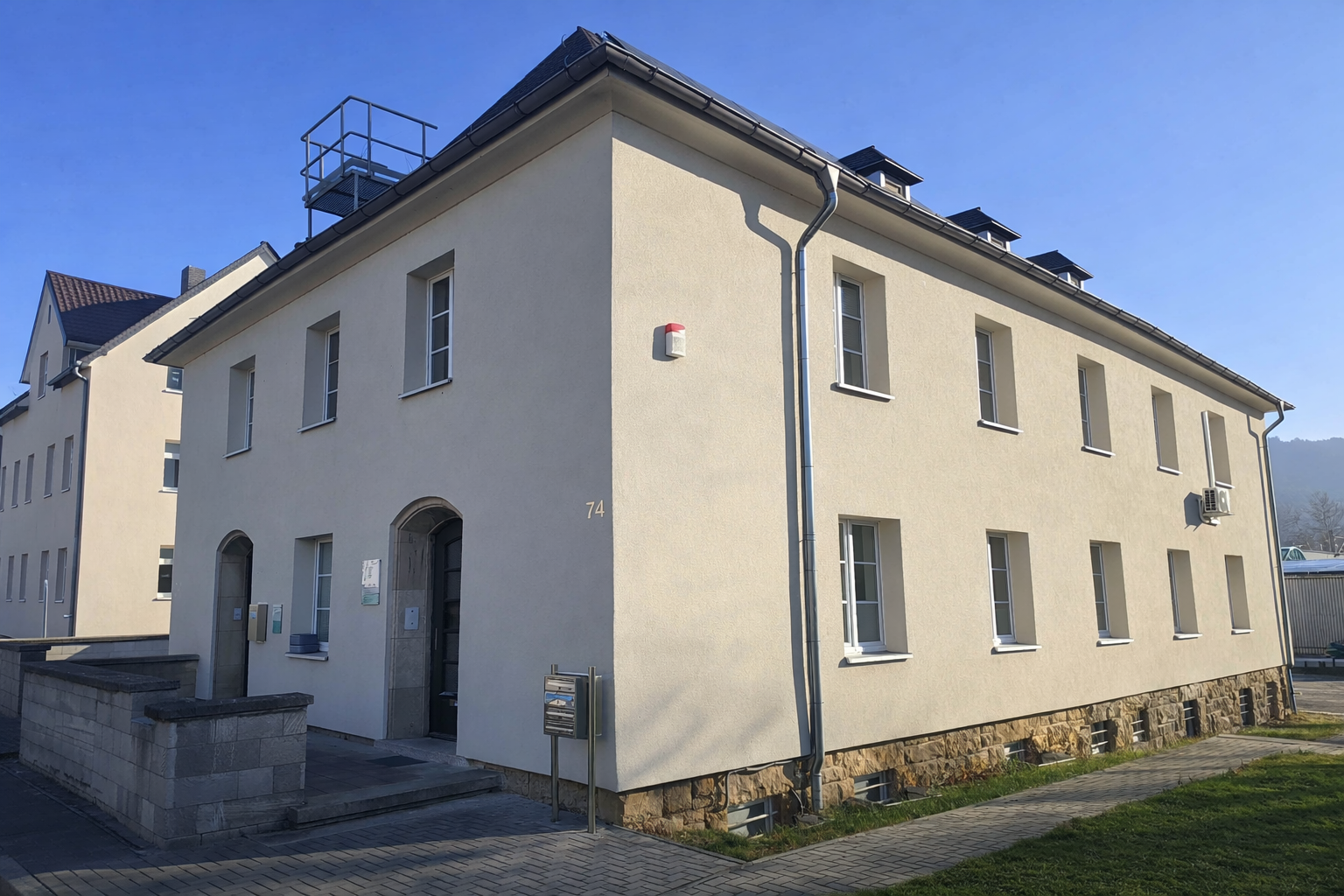 Das Gebäude wurde ursprünglich im Jahr 1930 als Verwaltungsgebäude durch das Land Thüringen errichtet und befindet sich aufgrund umfassender Sanierungs- und Modernisierungsmaßnahmen heute in einem hervorragenden baulichen Zustand. Seit dem Erwerb durch den aktuellen Eigentümer wurde das Objekt kontinuierlich gepflegt und technisch modernisiert. Zwischen 2016 und 2025 erfolgte eine umfassende Generalsanierung einschließlich energetischer Modernisierung sowie Ausbau des Dachgeschosses.