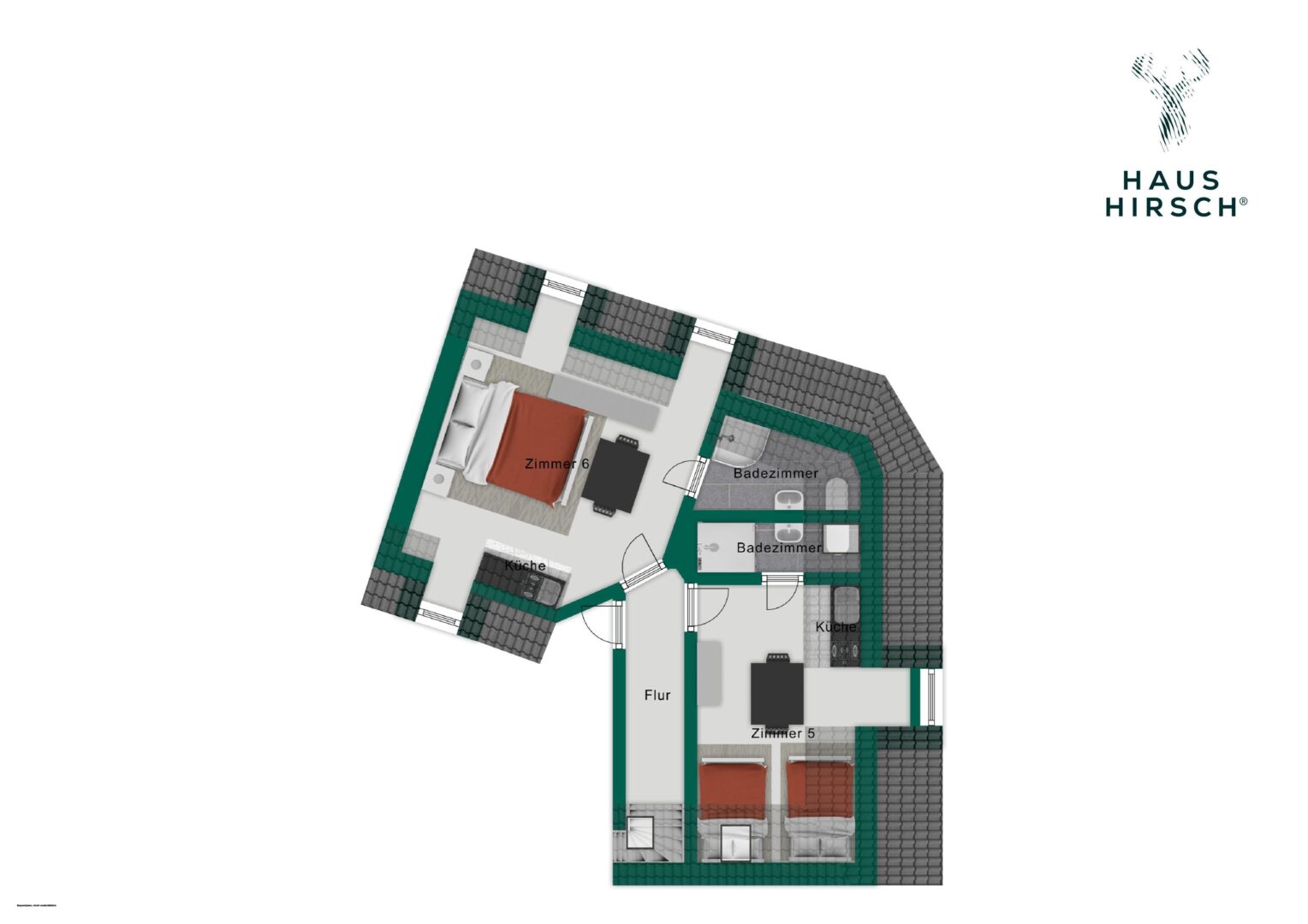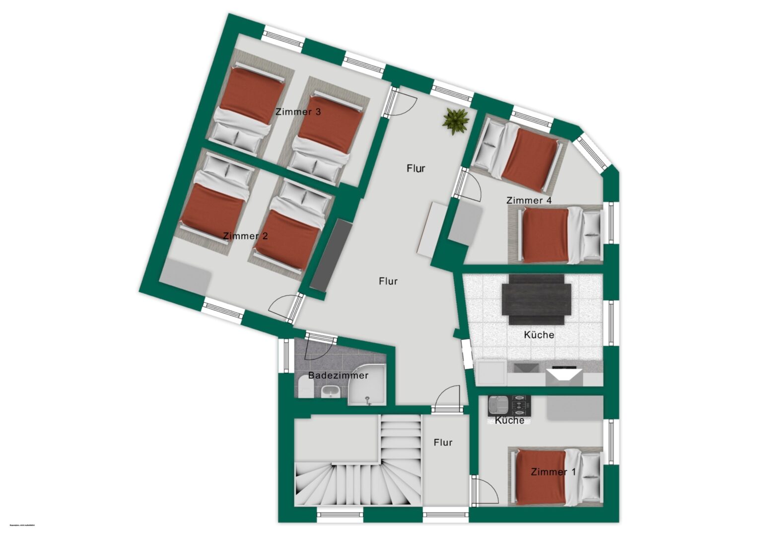 • Zimmer 5 & 6 (2. OG): 450 € brutto pro Woche.