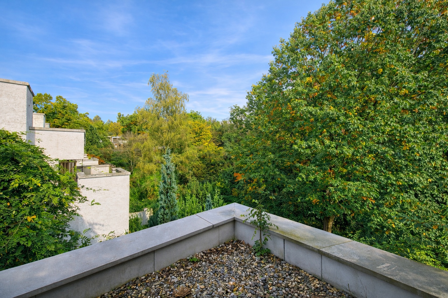 Ein besonderes Highlight ist die großzügige Dachterrasse. Von hier aus öffnet sich der Blick auf das dahinterliegende Waldstück sowie die angrenzende Parkanlage und vermittelt eine außergewöhnlich ruhige, grüne Atmosphäre. Ob ein entspanntes Frühstück in der Morgensonne, eine kleine Pause am Nachmittag oder ein gemütlicher Sommerabend – dieser Außenbereich wird schnell zu einem der schönsten Plätze der Wohnung.