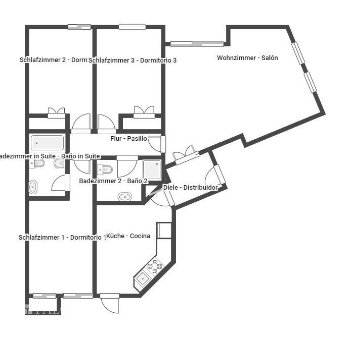 Die drei Schlafzimmer überzeugen mit einer ansprechenden Größe und ein Doppelbett findet locker Platz. Ihre Kleidung können Sie in den Einbauschränken unterbringen.