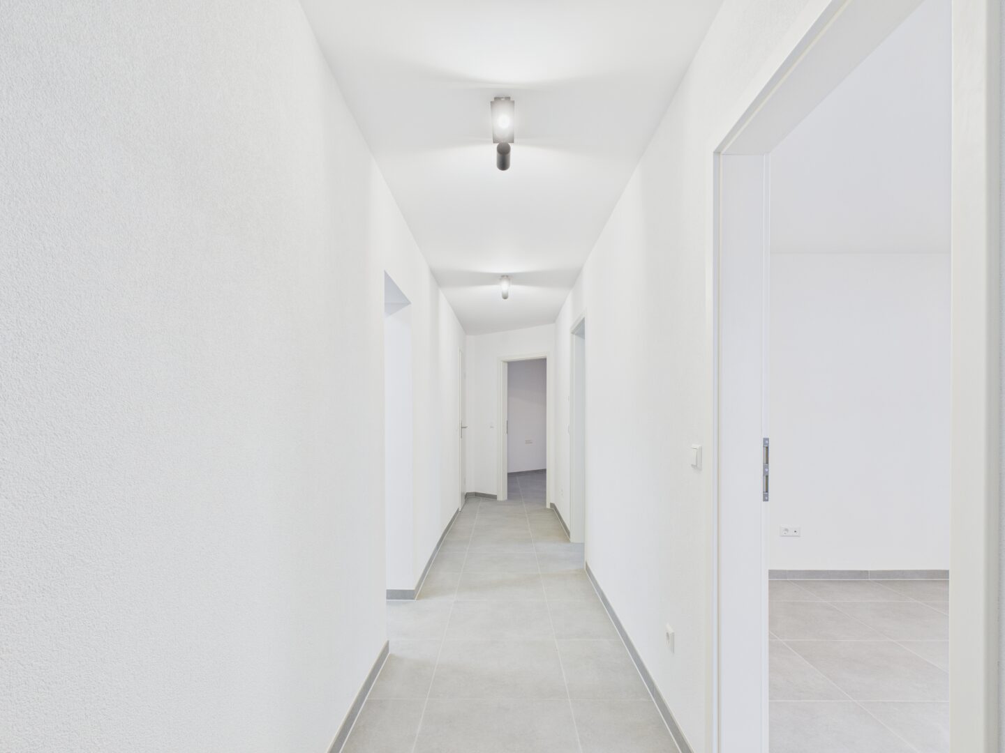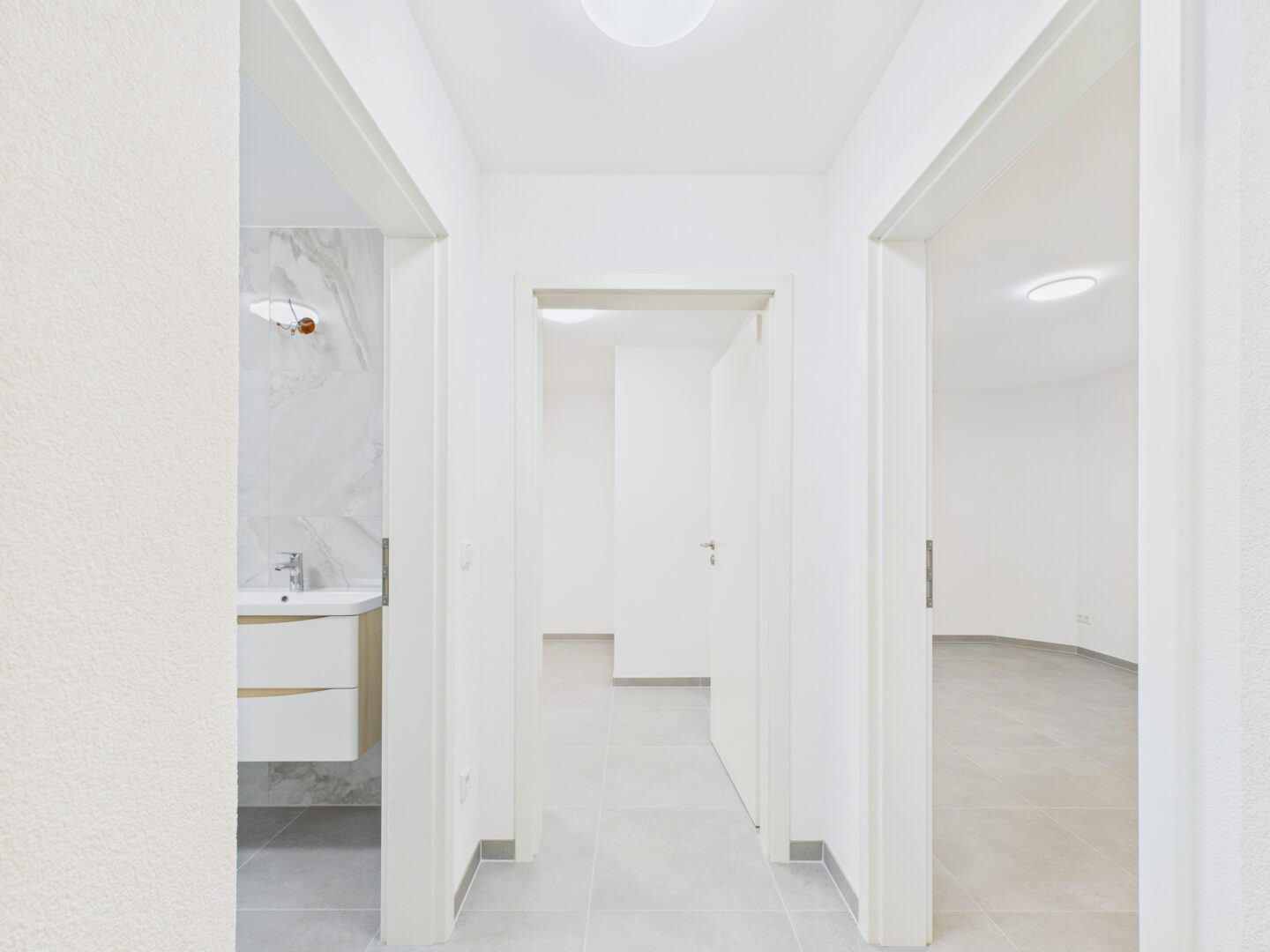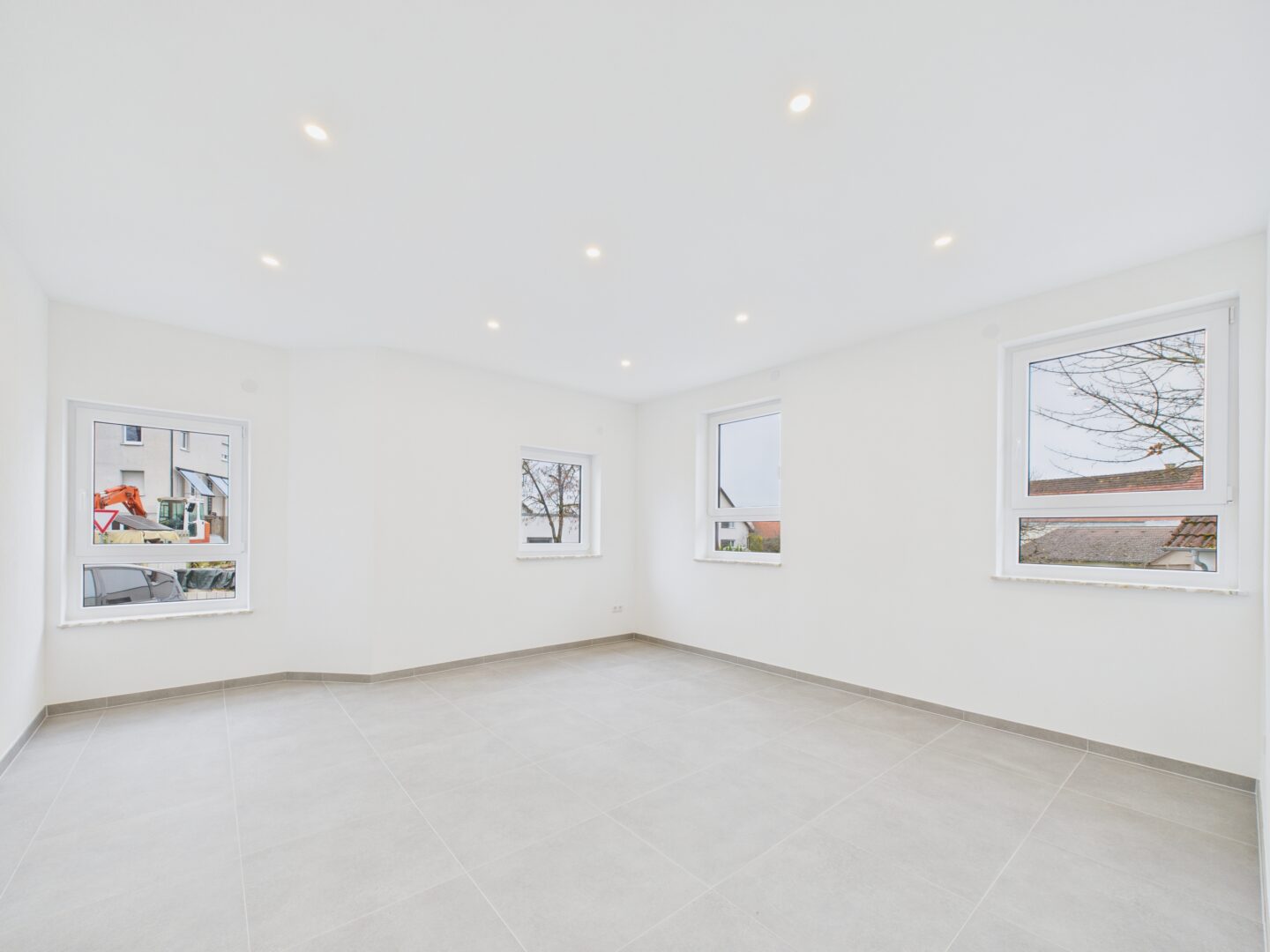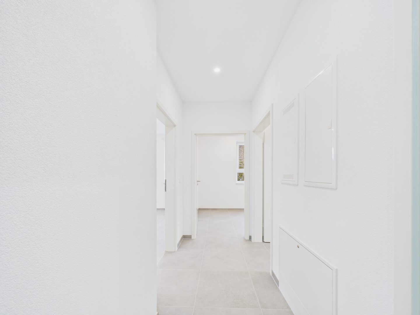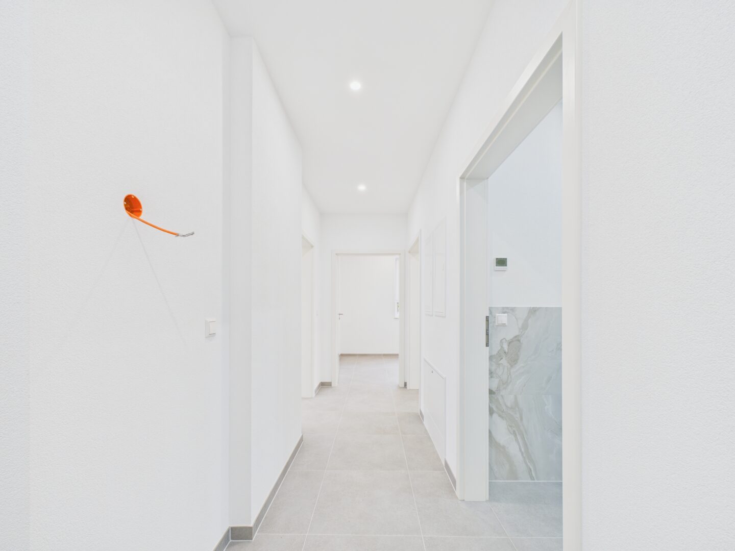 Die Wohnung im Untergeschoss besticht durch ihre praktische Raumaufteilung und hochwertige Ausstattung. Auch hier erwarten Sie neue Kunststofffenster, elektrische Rollläden und Fußbodenheizung in jedem Zimmer. Das Badezimmer ist mit Hansgrohe Armaturen, einer Regendusche und Wandfliesen in Marmoroptik ausgestattet. Die LED Lampen mit Fernbedienung sorgen für die perfekte Beleuchtung ganz nach Ihrem Geschmack.