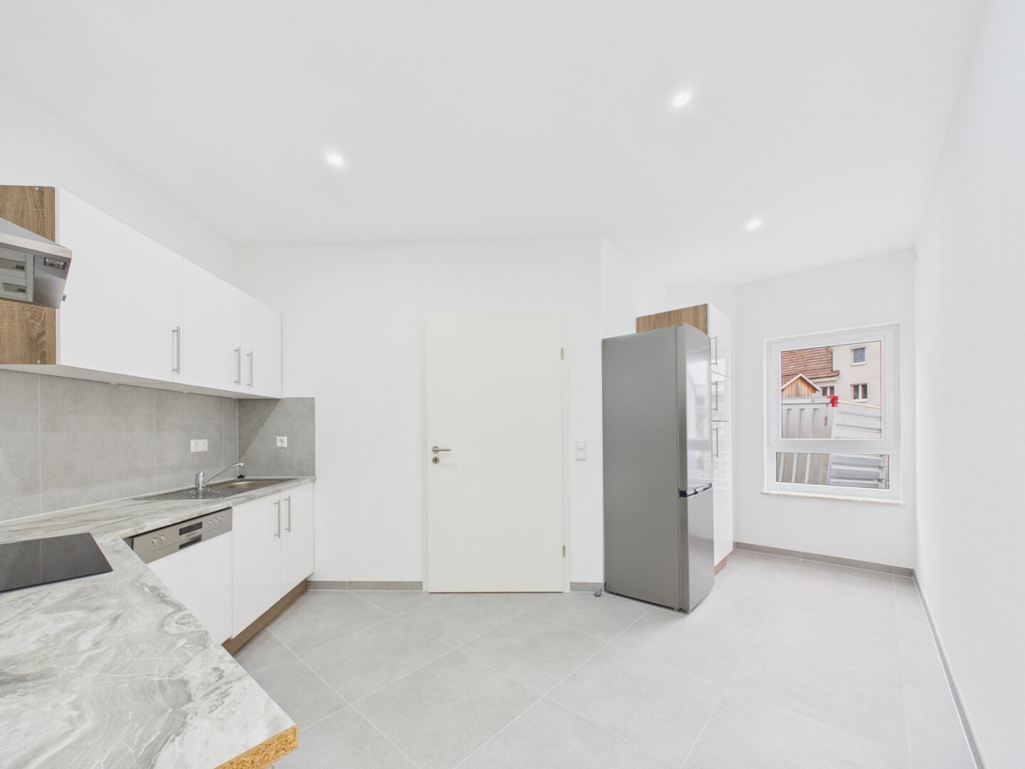 Willkommen zu dieser besonderen Besichtigung! Hier erwartet Sie ein einzigartiges Wohnkonzept mit zwei kernsanierten 4-Zimmerwohnungen. Beginnen wir mit der behindertengerechten Erdgeschosswohnung. Betreten Sie die Wohnung durch den eigenen Eingang und lassen Sie sich von den hochwertigen Details begeistern. Die neuen Kunststofffenster sorgen für angenehmes Licht und die elektrischen Rollläden bieten Ihnen Komfort auf Knopfdruck. Die grauen Steinzeugfliesen in 60x60 ziehen sich durch die gesamte Wohnung und verleihen ihr eine moderne Note. Die neu ausgestattete Küche lässt keine Wünsche offen und lädt zum Kochen und Genießen ein.