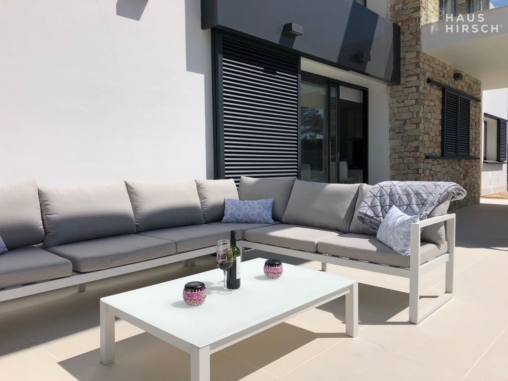 Im Außenbereich lädt ein beheizter Pool mit Luft-Wärmepumpe ein, der selbst im Winter angenehme 30°C erreicht. Die elektrische Abdeckung ermöglicht eine ganzjährige Nutzung und Energieeffizienz. Zwei stilvolle Daybeds sowie äußerst hochwertige, wetterfeste Outdoor-Möbel runden das luxuriöse Erscheinungsbild ab. Ein weiterer Höhepunkt und Upgrade ist der großzügige kürzlich fertiggestellte Wintergarten mit verschiebbaren Glasfronten und elektrischer Beschattung – ein Highlight und perfekt für gemütliche Stunden zu jeder Jahreszeit.