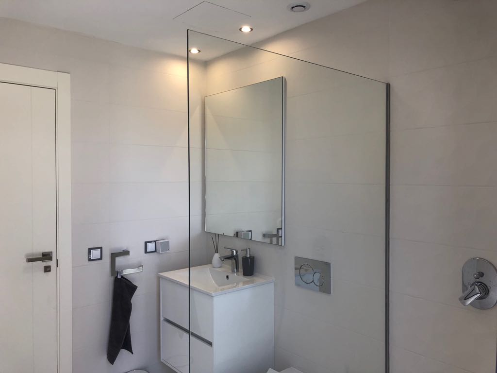 Die zwei stilvollen Badezimmer – eines davon mit einer eleganten, großzügigen walk-in Dusche, Doppelwaschbecken und separatem WC – bieten zusätzlichen Komfort.
