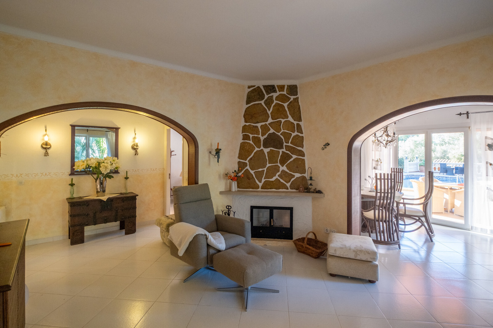 In einer der ruhigsten Straßen der Cala Murada gelegen, bietet diese charmante Villa ein exklusives Wohnerlebnis mit direktem Blick in die unverbaubare Grünzone. Schon beim Eintreten empfängt Sie der lichtdurchflutete Wohn-Essbereich mit gemütlichem Kamin und einer frisch renovierten Einbauküche, die zu kulinarischen Abenden einlädt.