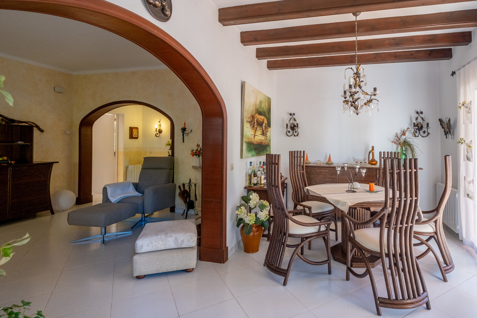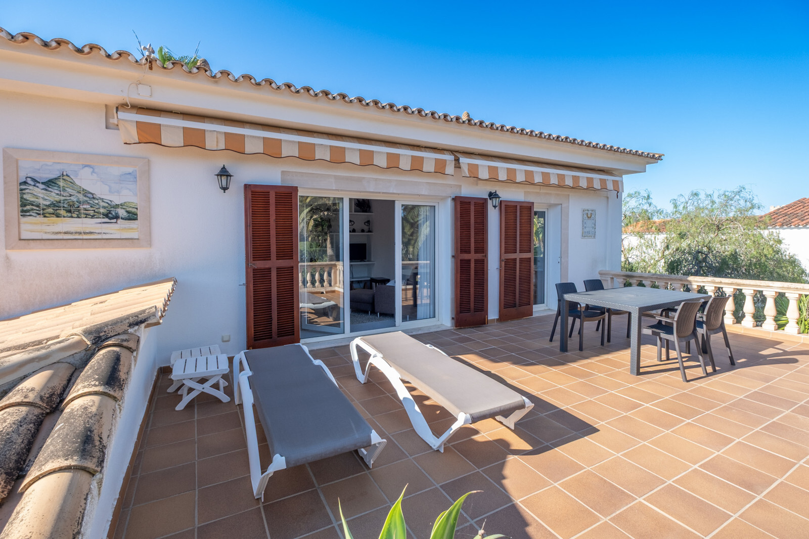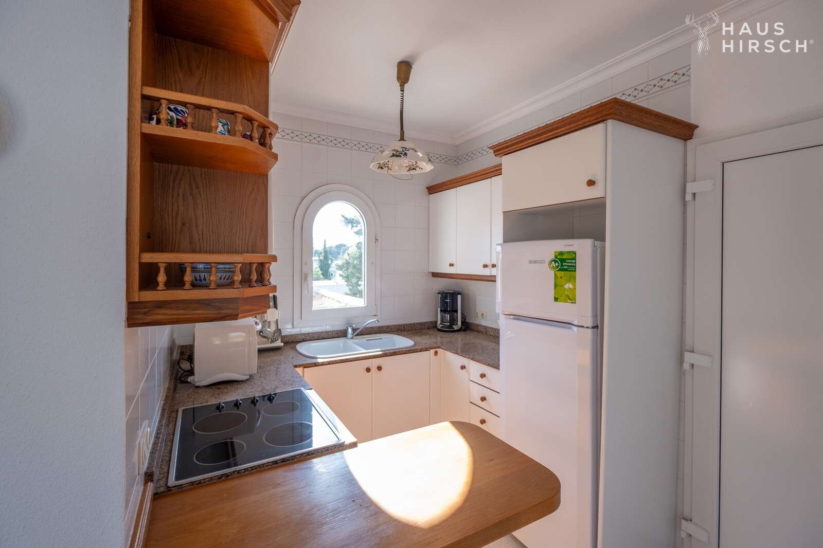 In einer der ruhigsten Straßen der Cala Murada gelegen, bietet diese charmante Villa ein exklusives Wohnerlebnis mit direktem Blick in die unverbaubare Grünzone. Schon beim Eintreten empfängt Sie der lichtdurchflutete Wohn-Essbereich mit gemütlichem Kamin und einer frisch renovierten Einbauküche, die zu kulinarischen Abenden einlädt.