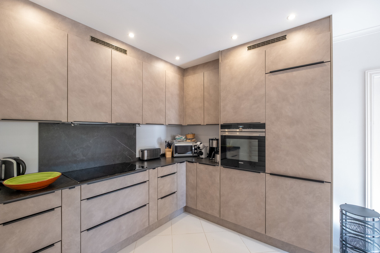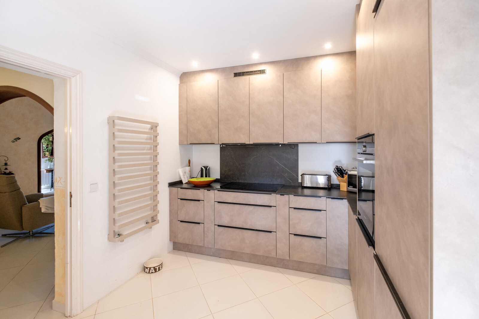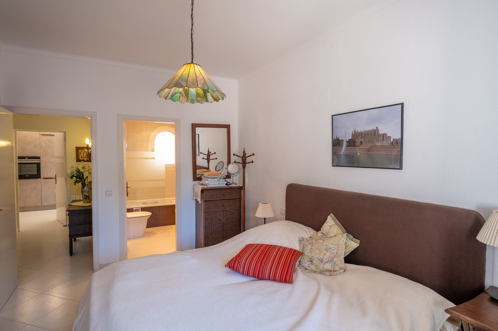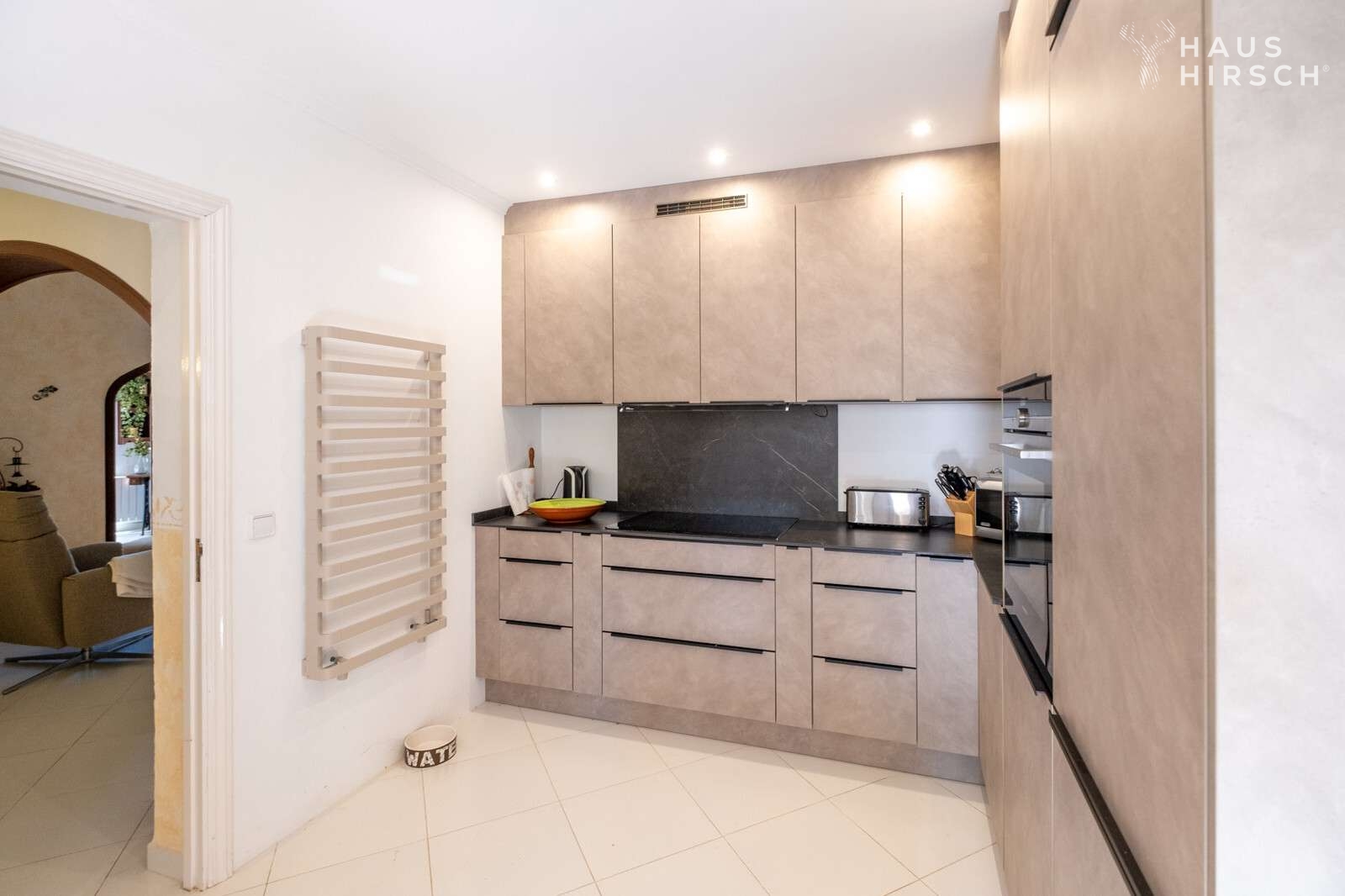 Zwei geräumige Schlafzimmer mit Einbauschränken und modernisierten En-Suite-Bädern – eines davon mit luxuriöser Fußbodenheizung – garantieren höchsten Komfort. Über eine Außentreppe erreichen Gäste ein separates Apartment mit eigenem Wohnbereich, Küche und zwei privaten Balkonen, was maximale Unabhängigkeit ermöglicht. Ob als Büro, oder für Familien oder Freunde, es ist vielseitig nutzbar.