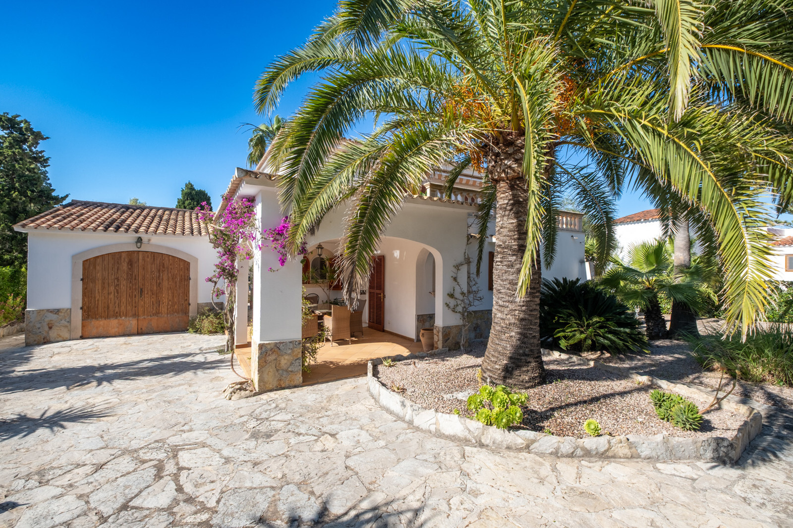 Technisch ist die Immobilie mit einer neuen Wärmepumpe und einer Photovoltaikanlage bereits heute (Stand 2026) energetisch perfekt für die Zukunft aufgestellt. Neue Heizkörper sind im gesamten Haus installiert. Abgerundet wird das Angebot durch eine geräumige Garage mit edlem Holztor sowie ein Außenbad mit Waschküche. Die Villa wird komplett möbliert verkauft – inklusive hochwertigem Equipment wie einem Weber-Grill und modernen Elektrogeräten. Einziehen und das mediterrane Leben auf höchstem Niveau genießen!
