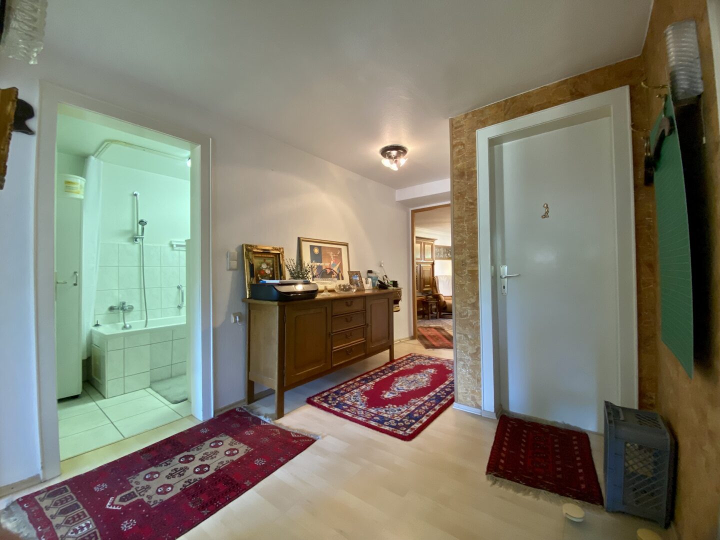 Die Immobilie verfügt über 9 Zimmer, 4 Schlafzimmer und 3 Bäder, perfekt für Familien oder Kapitalanleger. Die letzte Modernisierung fand 2019 statt, wobei einige Bereiche noch sanierungsbedürftig sind und individuelle Gestaltungsmöglichkeiten bieten. Die Ausstattung ist normal und funktional, mit einer Mischung aus Fliesen, Laminat und Teppichböden.