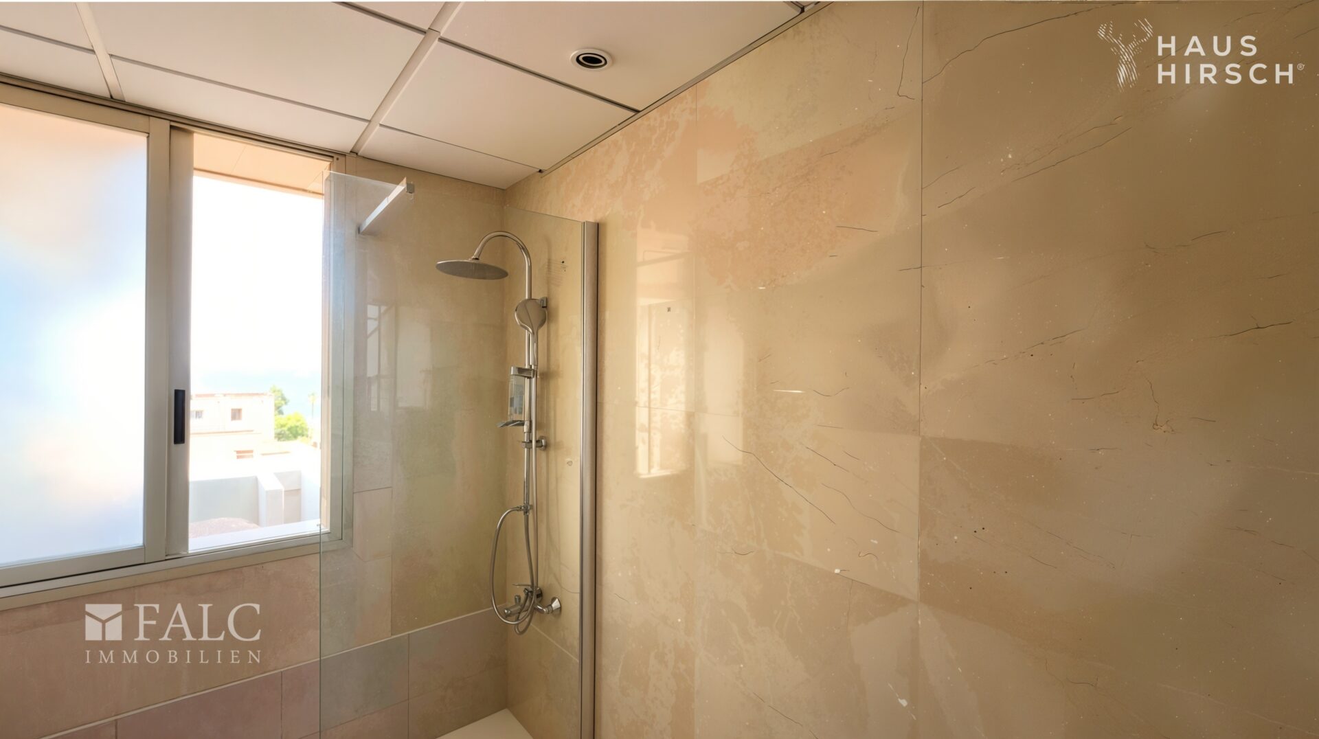 Die obere Etage überzeugt mit einem weiteren offen gestalteten Raum, der ebenfalls über eine kleine Küche und ein separates Badezimmer verfügt. Auch hier lädt eine Terrasse mit Meerblick zum Verweilen ein. Als absolutes Highlight erwartet Sie zudem eine private Dachterrasse – perfekt für entspannte Sonnenstunden mit Weitblick oder gesellige Abende unter freiem Himmel.