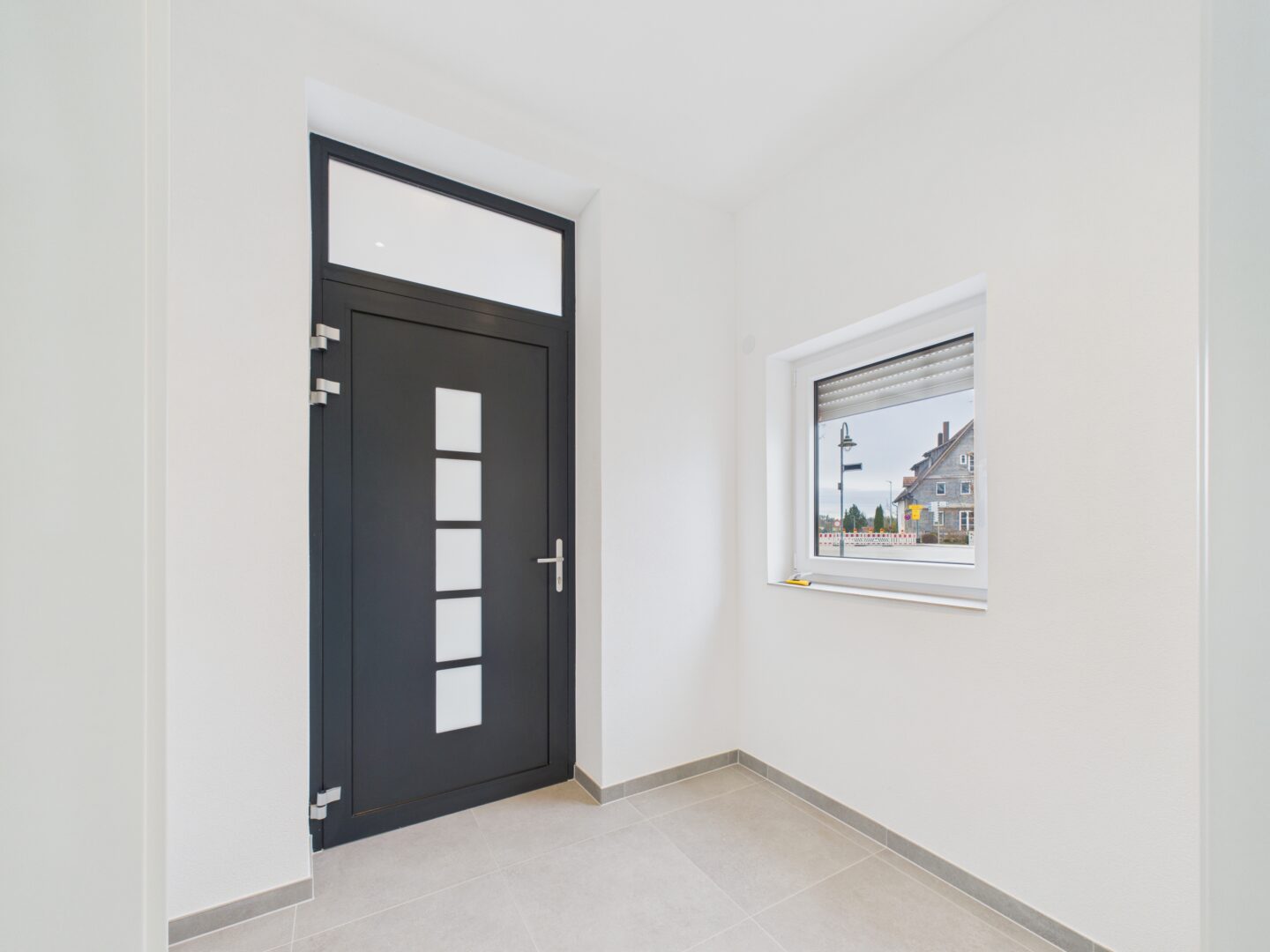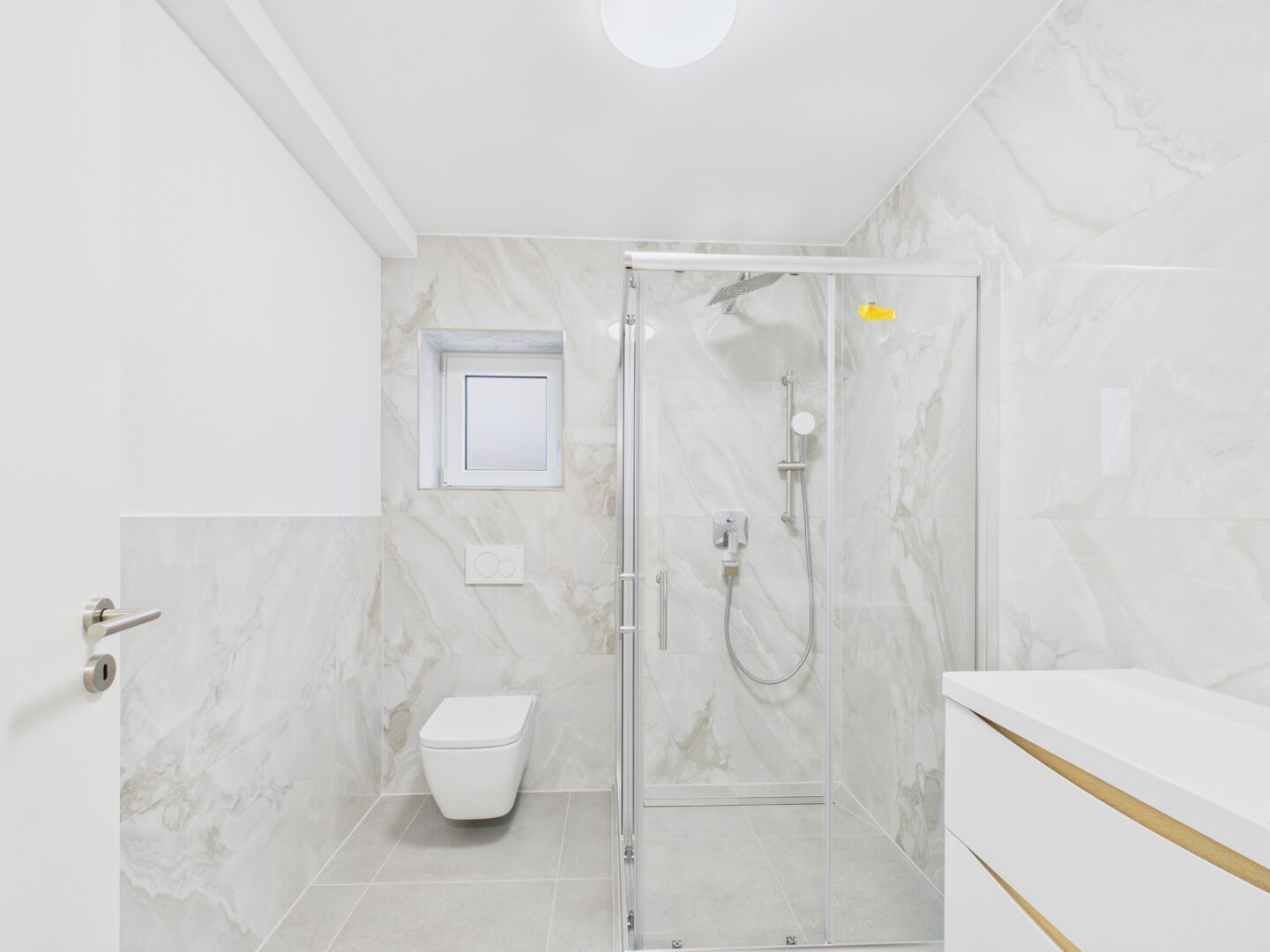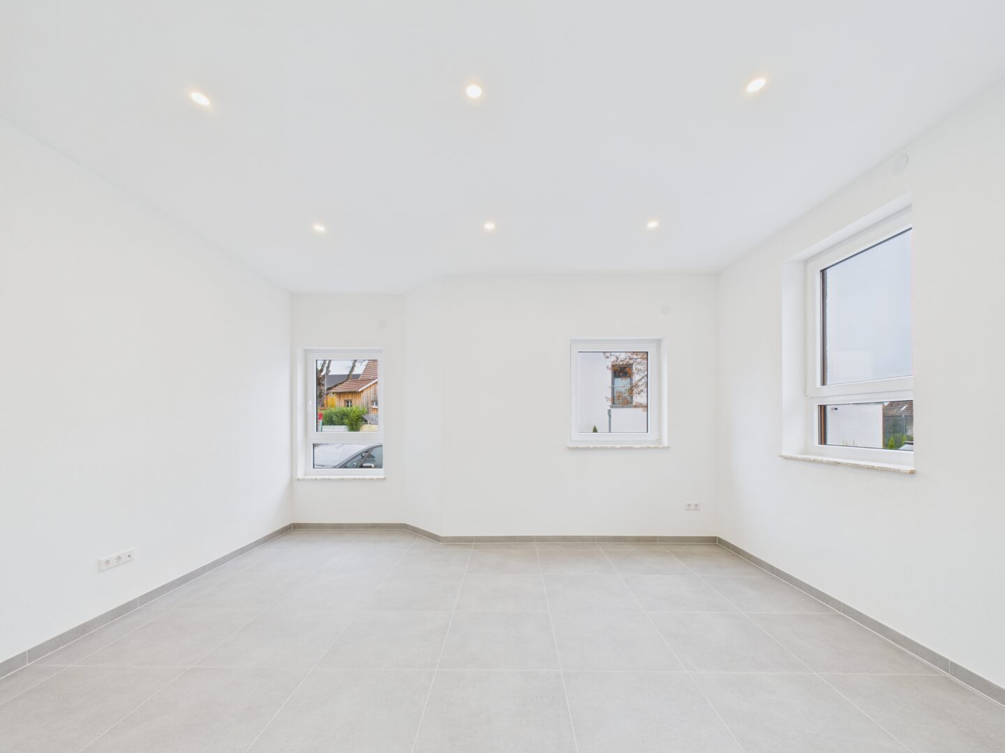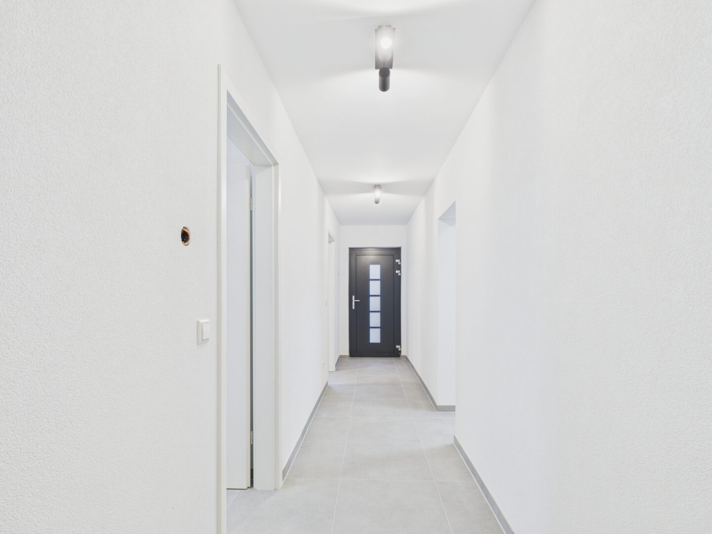 Die Wohnung im Untergeschoss besticht durch ihre praktische Raumaufteilung und hochwertige Ausstattung. Auch hier erwarten Sie neue Kunststofffenster, elektrische Rollläden und Fußbodenheizung in jedem Zimmer. Das Badezimmer ist mit Hansgrohe Armaturen, einer Regendusche und Wandfliesen in Marmoroptik ausgestattet. Die LED Lampen mit Fernbedienung sorgen für die perfekte Beleuchtung ganz nach Ihrem Geschmack.