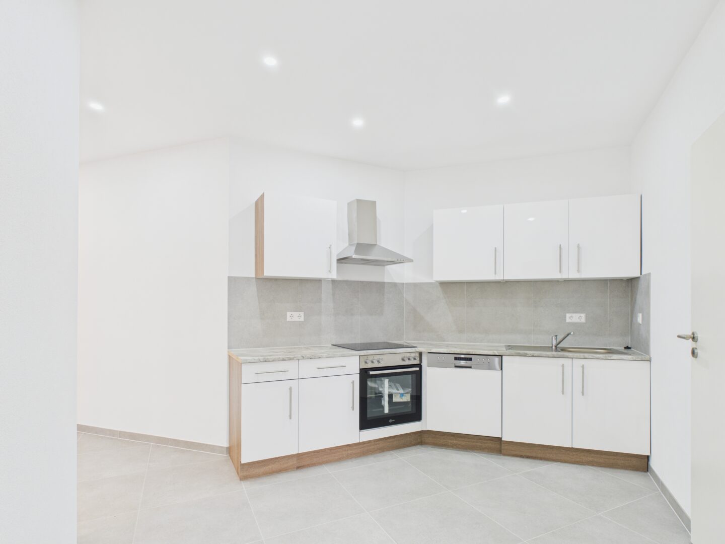 Willkommen zu dieser besonderen Besichtigung! Hier erwartet Sie ein einzigartiges Wohnkonzept mit zwei kernsanierten 4-Zimmerwohnungen. Beginnen wir mit der behindertengerechten Erdgeschosswohnung. Betreten Sie die Wohnung durch den eigenen Eingang und lassen Sie sich von den hochwertigen Details begeistern. Die neuen Kunststofffenster sorgen für angenehmes Licht und die elektrischen Rollläden bieten Ihnen Komfort auf Knopfdruck. Die grauen Steinzeugfliesen in 60x60 ziehen sich durch die gesamte Wohnung und verleihen ihr eine moderne Note. Die neu ausgestattete Küche lässt keine Wünsche offen und lädt zum Kochen und Genießen ein.